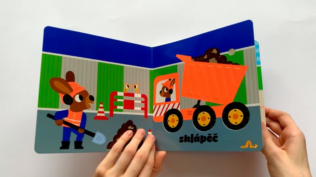 Dotykové a zvukové leporelo. Jaké zvuky strojů by mohly děti zaslechnout na staveništi? Sklápěč, sbíječku, bagr, jeřá...