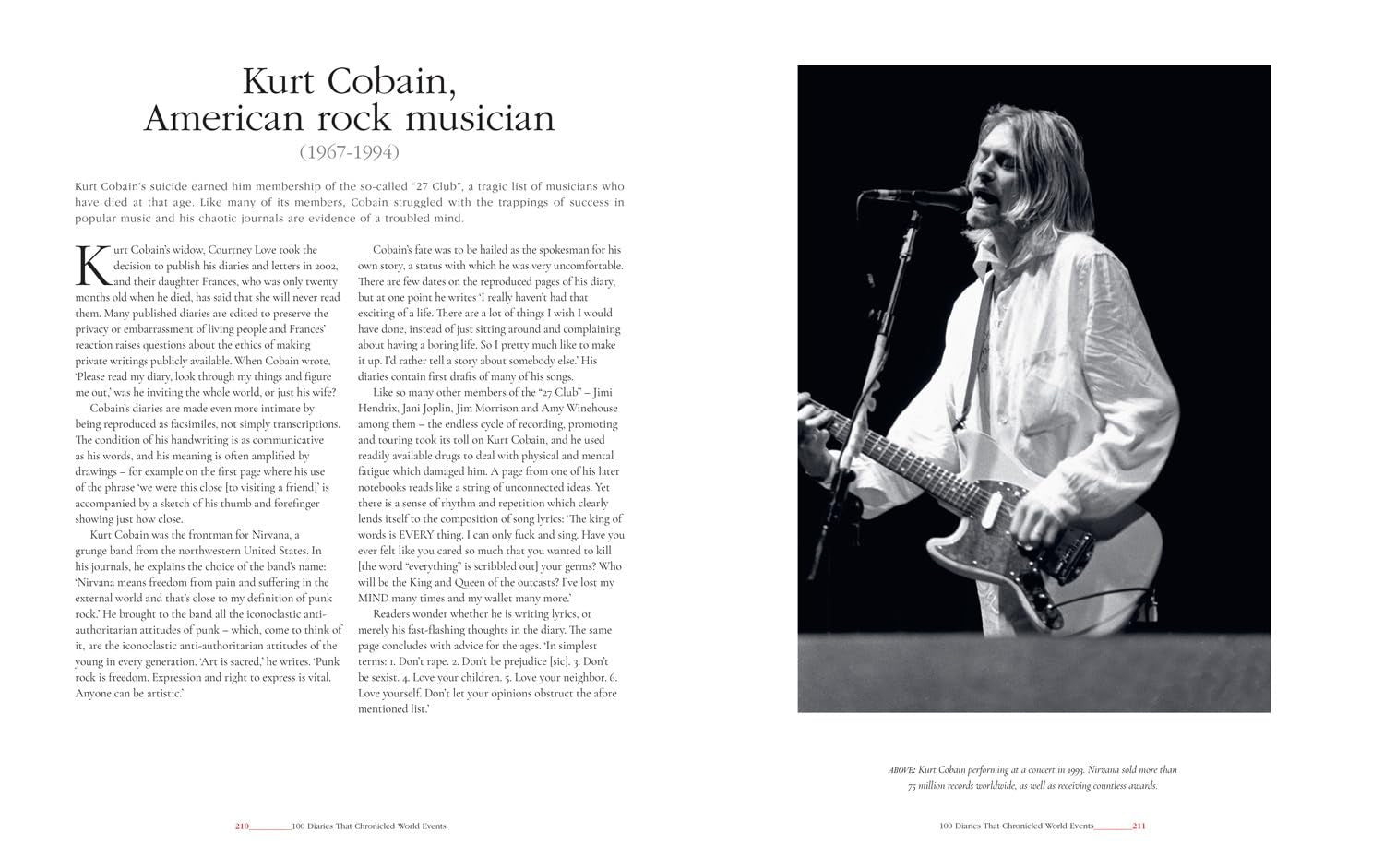100 Diaries that Chronicled World Events introduces us to the world’s greatest diarists. Including the historical journals of Samuel Pepys and Anne Frank; snapshots of culture in the diaries of Frida Kahlo and Kurt Cobain; and windows into the past from Queen Victoria and John Adams.