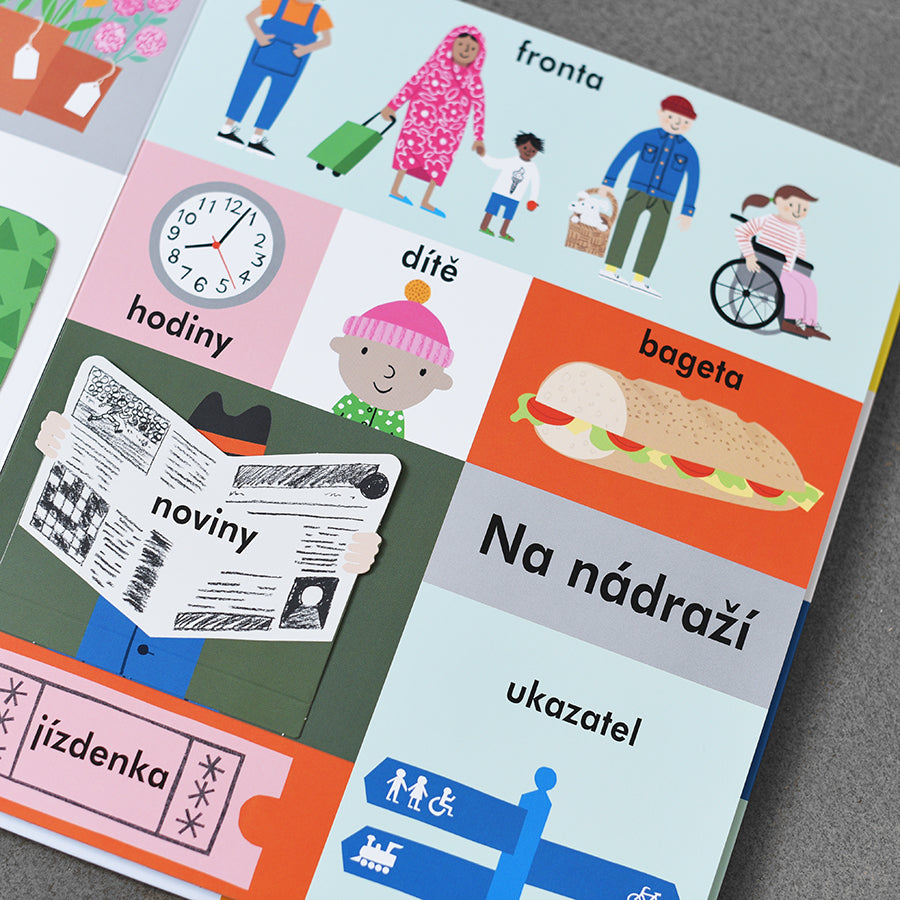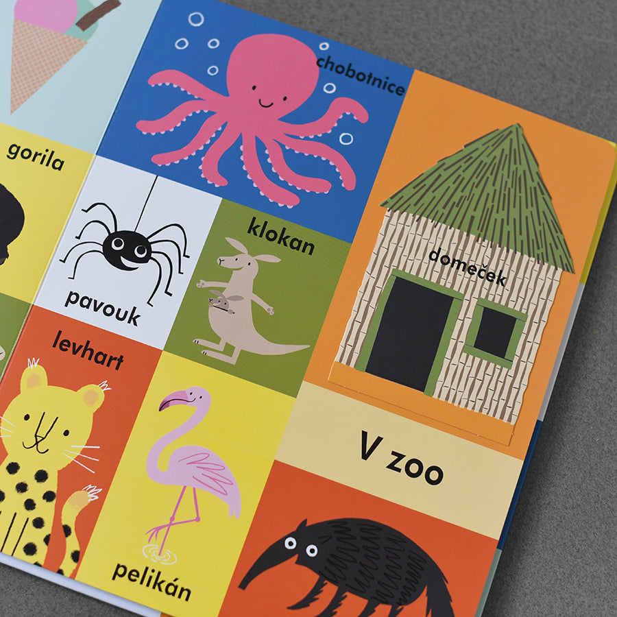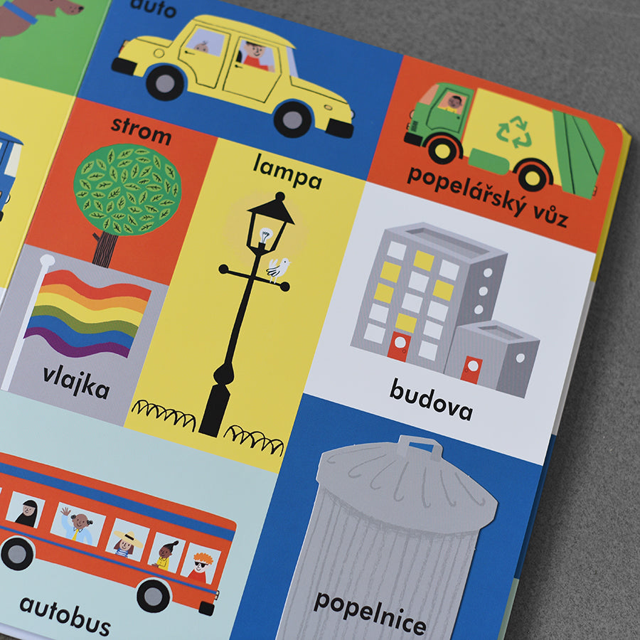 Co všechno můžeš potkat ve městě? Jak to vypadá na ulici, na nádraží nebo v obchodě? A umíš to pojmenovat? Jaká jsou první slova vašeho děťátka? V tomto leporelu plném roztomilých ilustrací najdete 100 slov, která jsou základním kamenem slovní zásoby každého dítěte. Leporelo je doplněné o odklápěcí okénka a dítě si tak může zároveň procvičovat jemnou motoriku a koordinaci prstíků při odklápění obrázků. Co se asi skrývá pod okénkem? Každá dvoustrana je věnována různým oblastem, například muzeum, koupaliště nebo restaurace. S touto knížkou snadno naučíte své dítě pojmenovávat předměty, které zná z procházek městem.