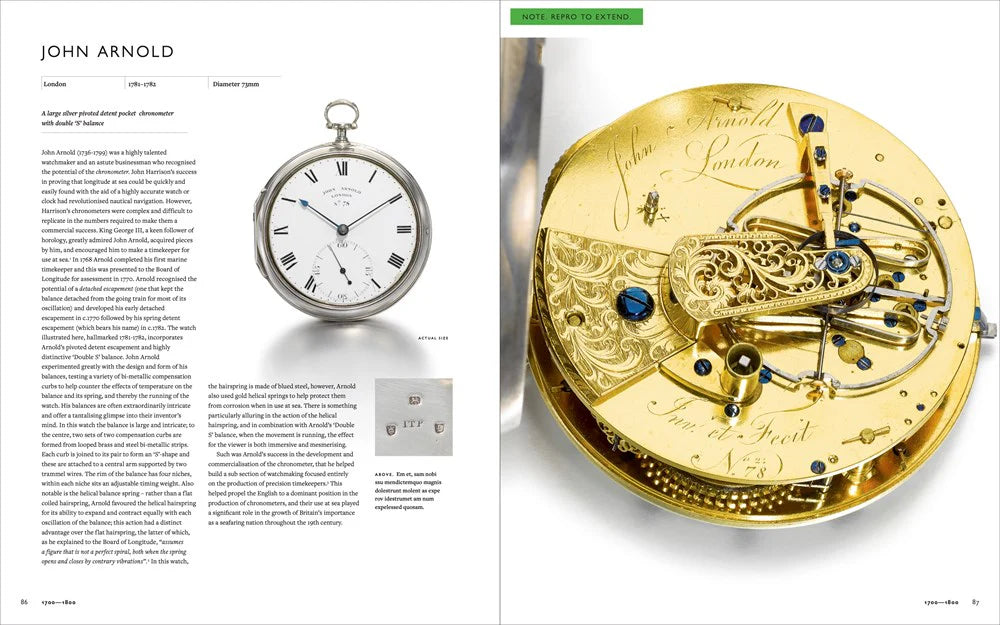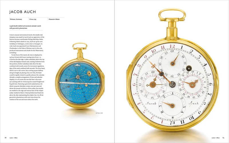 Readers will discover examples of the earliest watch forms; an astonishing Elizabethan-era watch with astrolabic dial; an early 17th century watch encased in a single emerald; two of the earliest watches to incorporate the balance spring—a feature that revolutionized the portable timekeeper; and some of the first repeating and perpetual calendar watches. These are followed by the first lever watch, invented by Thomas Mudge; important precision watches; early 19th century enamel and automaton watches; highly complex watches by Breguet and Patek Philippe; Sir Winston Churchill’s yellow gold World Time Victory watch; a Rolex wristwatch made to commemorate Indian Republic Day; an Omega Speedmaster that went into space; and a Roger Smith wristwatch completed in 2023.