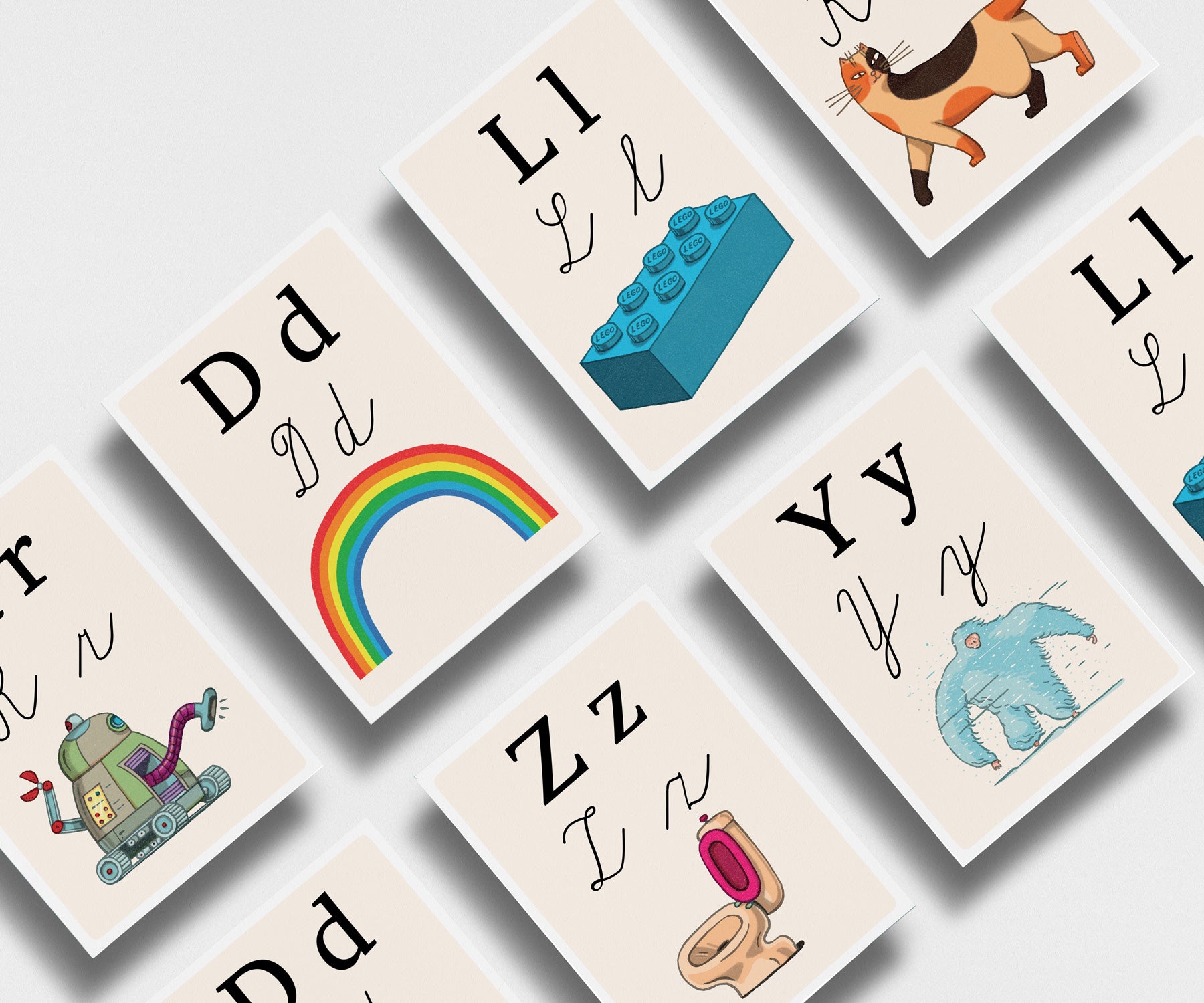 Karty s písmeny české abecedy s ilustracemi Martina Krkoška.