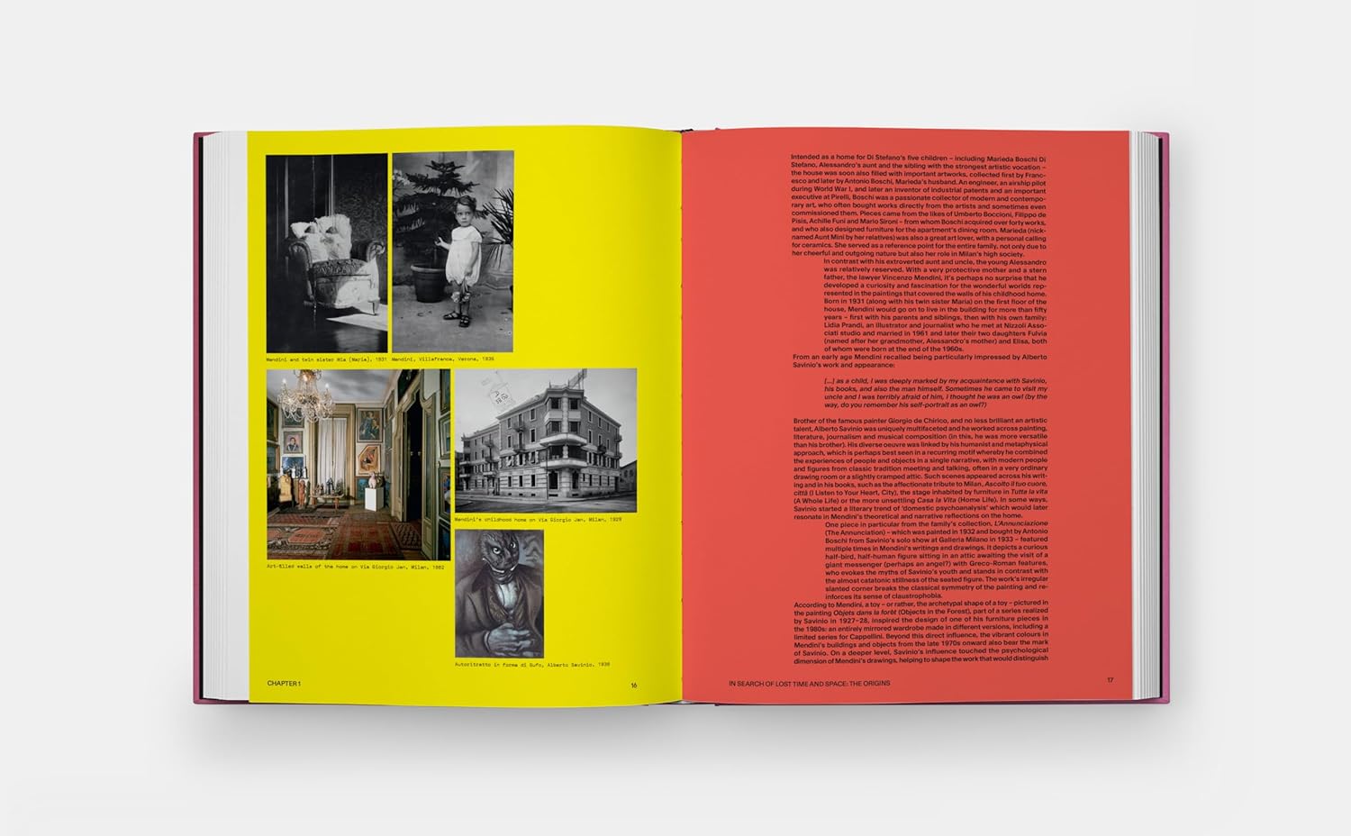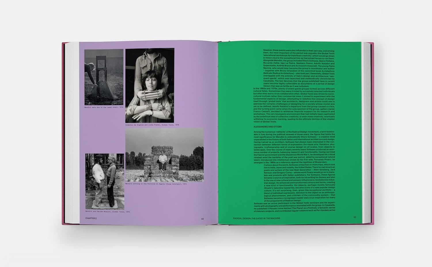 Presented in a dynamic package inspired by Mendini’s distinctive aesthetic, the book is a design object in its own right, with a pink cloth cover featuring one of Mendini’s iconic magazine covers on the front, a sketch of his famous Proost chair on the back, and die-cut laminated tip-in chapter openers with wavy edges.