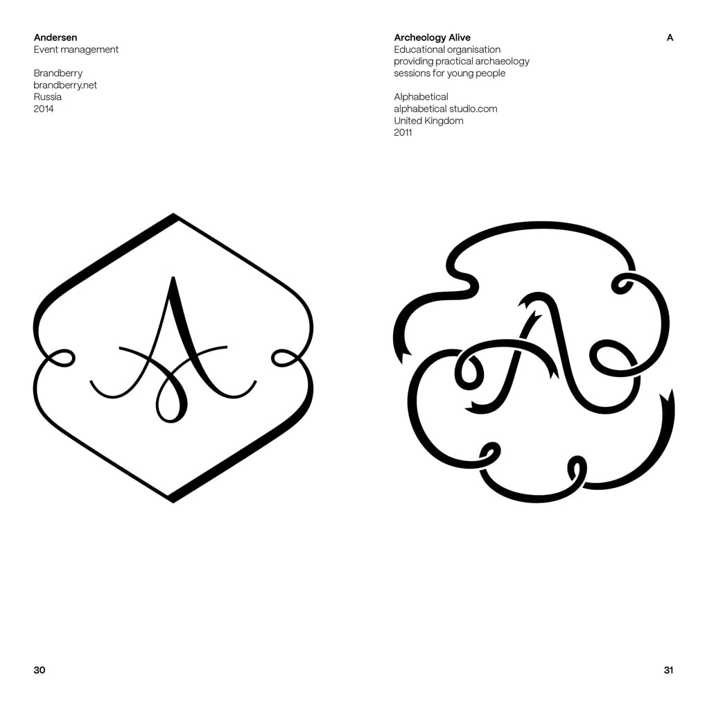 Alphabet Logo obsahuje stovky logotypů a značek z celého světa, které pracují s jediným písmenem jako hlavním identifikačním prvkem.