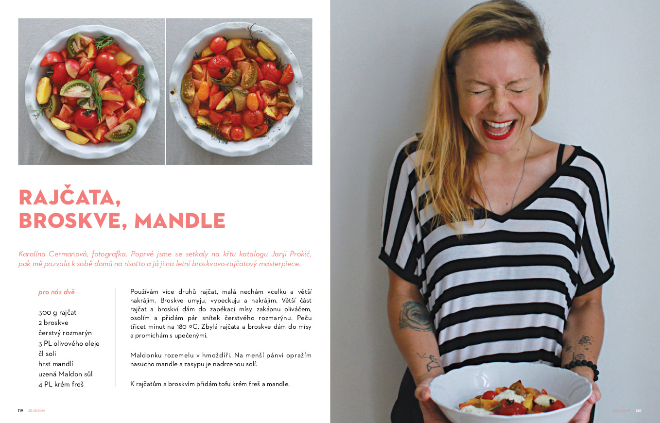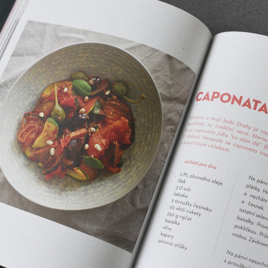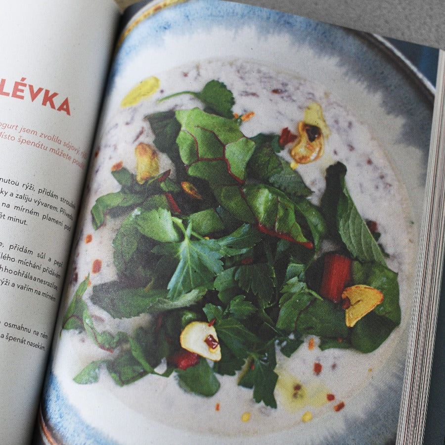 "Chtěla jsem sepsat, co doma vařím, co nakládám, jak fermentuji, co peču. Taky jsem si chtěla připomenout to, co jsme vařívali doma, když jsem byla dítě. V upravené verzi z rostlinných surovin. Můj táta dělal celý život v gastru, prodělala jsem poruchu příjmu potravy, s přítelem a jeho bráchou provozuji dvě bistra. S jídlem mám prostě celoživotní vztah, komplikovaný i vášnivý. O to, co jsem se naučila v posledních letech a co mě baví, se s vámi podělím na 256 stranách, v 95 receptech, na 138 fotografiích.“