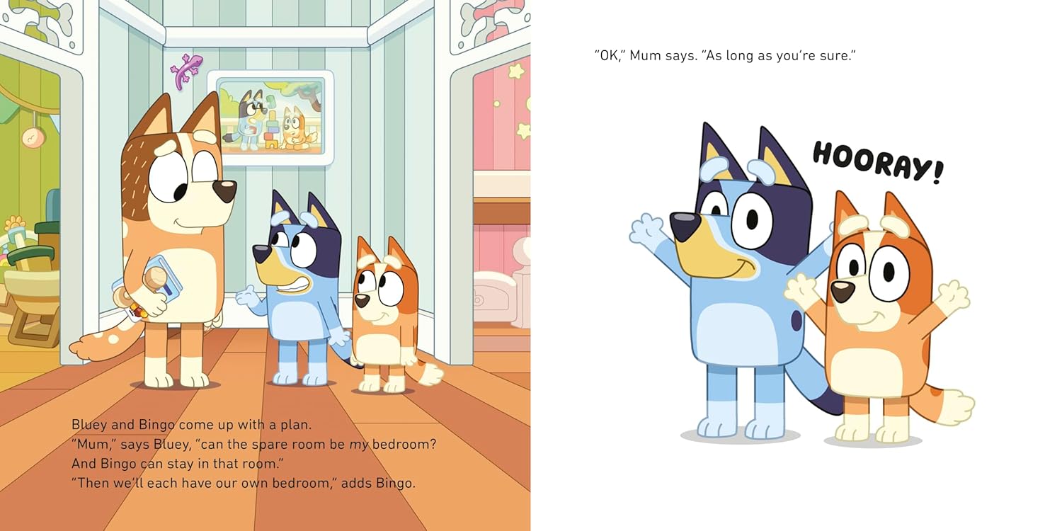 Bluey decides she wants her own bedroom. But when bedtime comes, she misses Bingo more than she expected. Will Bluey be able to find a way to keep in touch with Bingo after she’s moved?Want more Bluey? Also Available:Bluey: Road TripBluey: TrainsBluey: Bad Mood