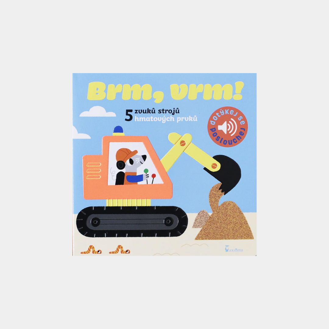 Dotykové a zvukové leporelo. Jaké zvuky strojů by mohly děti zaslechnout na staveništi? Sklápěč, sbíječku, bagr, jeřáb a parní válec. Na každé stránce jsou zakomponovány až dva různé, většinou textilní materiály, které jsou příjemné na dotek a na každé stránce je také nezbytné zvukové dotykové tlačítko, k jehož spuštění není zapotřebí síly. Reálné zvuky zvířat jsou ve vysoké kvalitě. Pro děti od 1 roku.