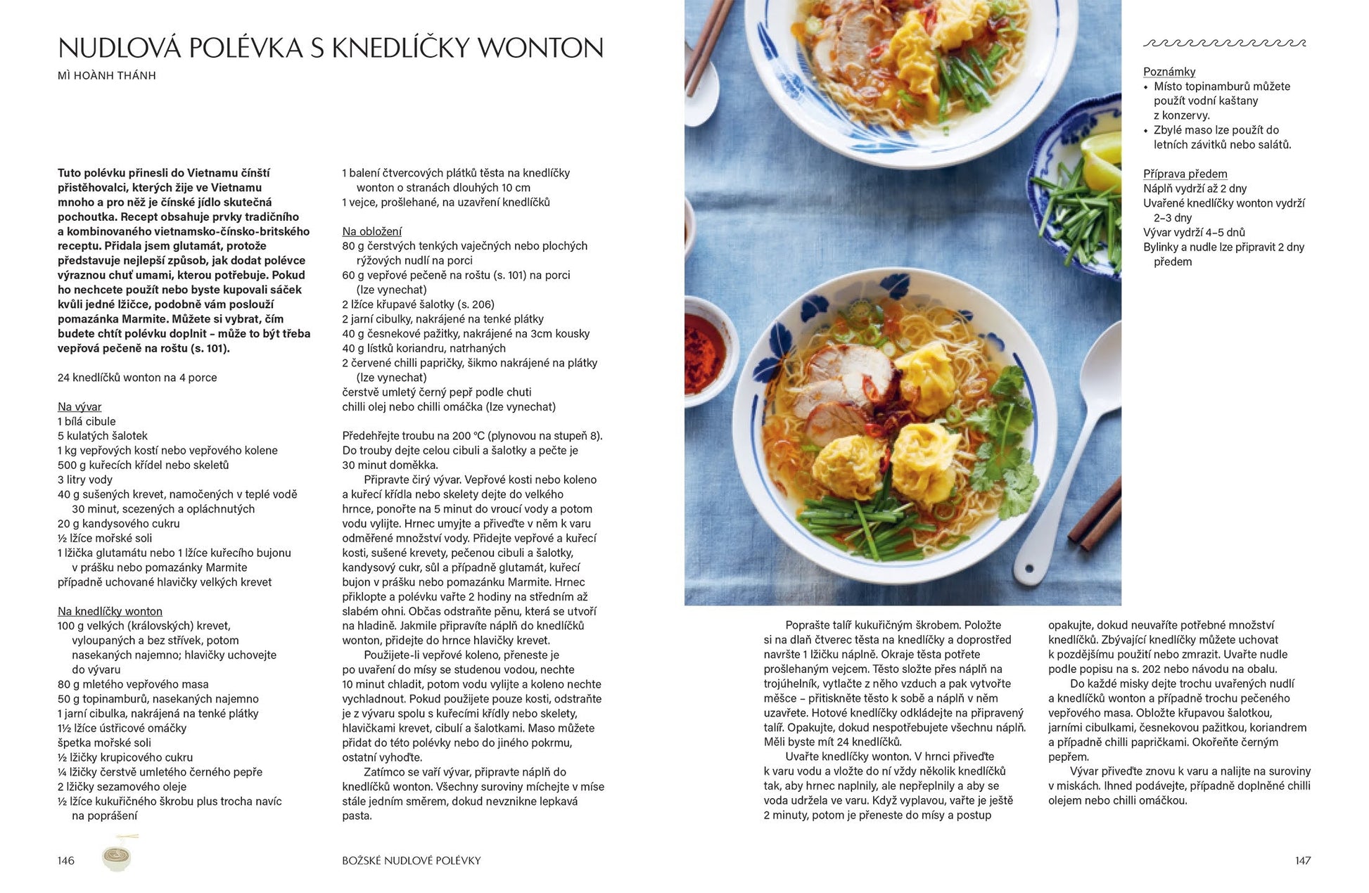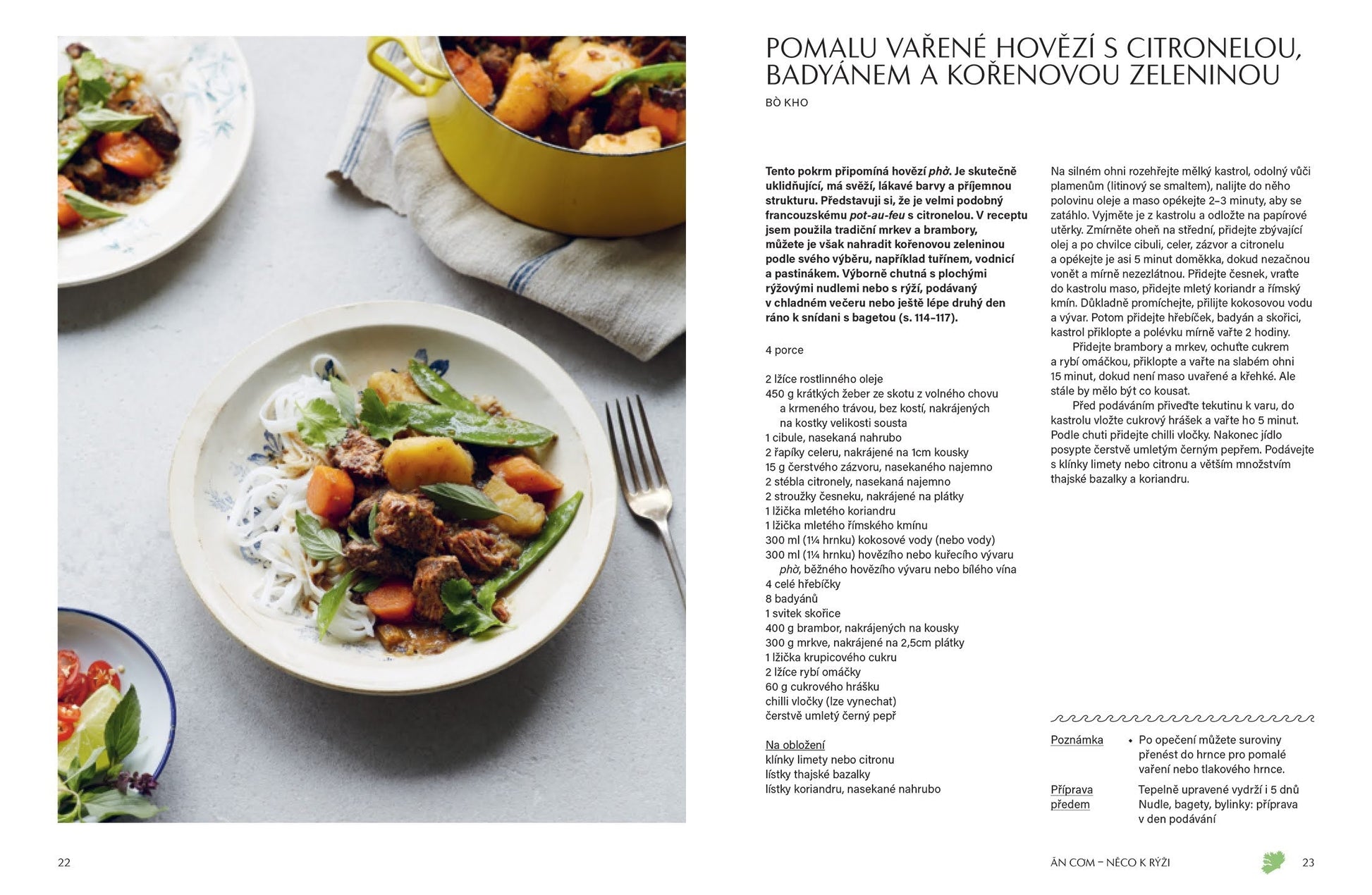 Když začnete vařit podle této vietnamské kuchařky, zjistíte, že potřebujete jen hrstku surovin a pak se budete snažit vyvážit sladkou, kyselou, slanou, hořkou, ostrou a umami chuť. Mnoho receptů je pro každodenní vaření - od rychlých polévek po pokrmy sdílené členy rodiny z jedné mísy a zázraky z jednoho hrnce. V knize jsou jídla i na víkendy a svátky, kdy máte o něco více času na vaření. Říká se tomu jídlo pro zábavu. Pokrmy můžete upravovat podle toho, jaké suroviny máte po ruce, a pokud něco neseženete, nahradíte to, recepty slouží jako kostra z přísad a postupů. Přizpůsobujte recepty, spotřebovávejte všechno beze zbytků a vystačte si s tím, co máte. Snadno poznáte, jak lze dát jídlu pravou vietnamskou chuť. Čeká vás třeba tofu s rajčaty a výhonkovou brokolicí v rybí omáčce, houby a topinambury prudce opékané v pánvi, horká a ohnivá zelenina s ančovičkami, kuřecí salát s cukrovým hráškem, vietnamským koriandrem a šalotkami nebo čerstvé závitky se salátem.