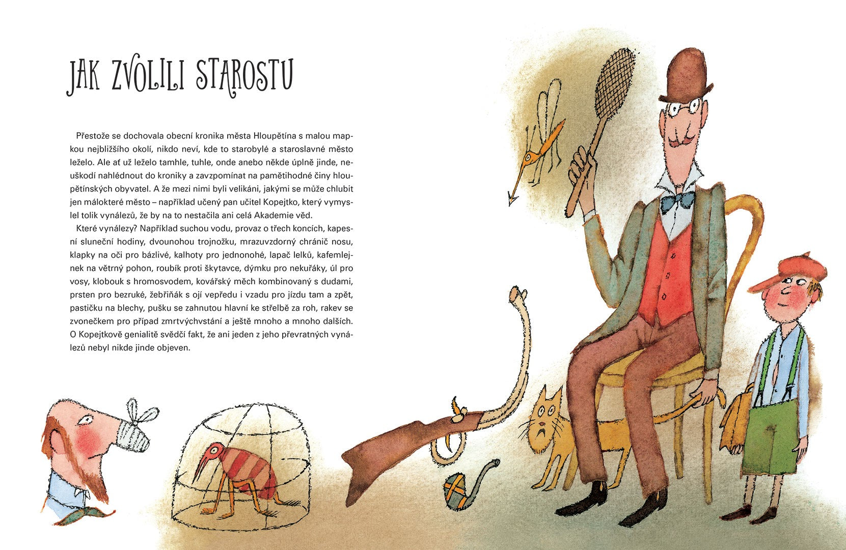 Po Hrůzostrašných pohádkách pro malé strašpytlíky, Čarodějných pohádkách pro malé kouzelníky, Chytrých pohádkách pro malé rozumbrady a svazku Ezopových bajek přicházejí básník Jiří Žáček a malíř Adolf Born s další knihou pro malé čtenáře. Jmenuje se Chytrolíni z Hloupětína a je inspirovaná příběhy svérázných obyvatel pohádkového městečka Hloupětína, legračních popletů a trumberů, kteří uvěří každému nesmyslu a nechají se napálit kdejakým kuliferdou. Dozvíte se, jak pěstovali koláče, jak pytlovali vítr pro případ bezvětří, jak stavěli most na kopci, jak slavili masopust s uprchlým medvědem, jak vynalezli ponorku, jakou medicínu užívali na zmoudření, jak si poradili s bezhlavým rytířem, jak si nechali prodloužit léto a zkrátit zimu, jak chovali v rybníku velryby, jak přemohli čerta, jak se dostalo prase do hloupětínského erbu, a prožijete s nimi řadu dalších dobrodružství. Ale jak připomíná autor, čím víc bláhovostí provádějí hloupětínští sousedé, tím víc s těmi zoufalci začneme sympatizovat a nakonec nám jejich zápas se zlomyslným osudem začne imponovat. Nejsme vlastně jejich potomci? Stačí se rozhlédnout, otevřít noviny nebo pustit televizi, abychom viděli, že i my žijeme v epoše bláznivin a pošetilostí. Máme se tím užírat a trápit? Raději se tomu upřímně zasmějme!