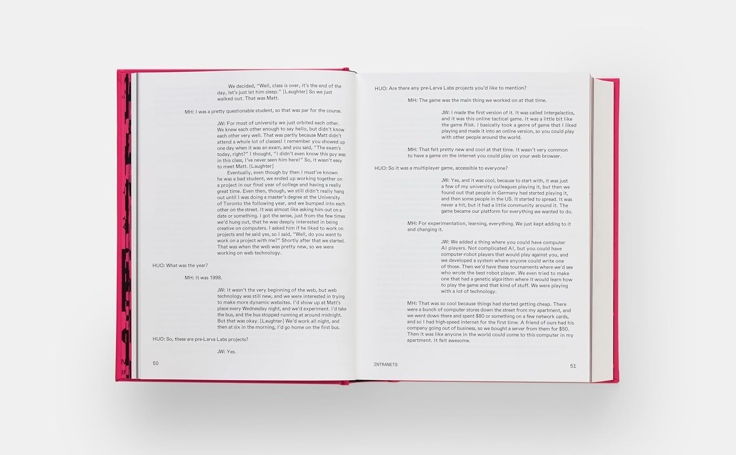 With an in-depth interview between Hans Ulrich Obrist (Artistic Director, Serpentine Galleries) and CryptoPunks founders Matt Hall and John Watkinson, this cult and category-defining book features a kaleidoscopic collection of texts, interviews, and visual essays exploring this emerging world of web3 and digital culture at large – inspiring a first wave of visual books on this groundbreaking subject.