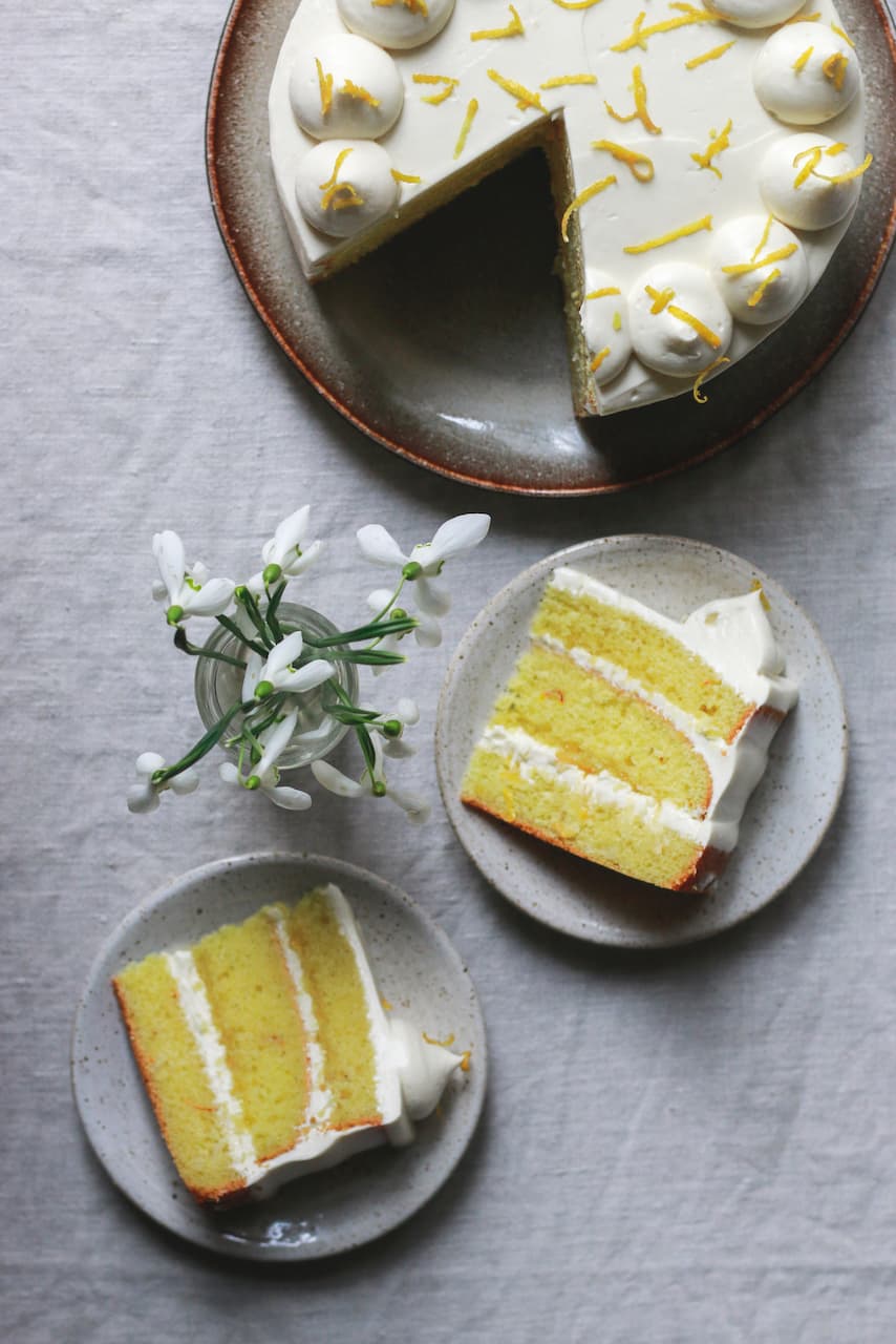 - Šafránový dort s krémem z bílé čokolády a yuzu marmeládou