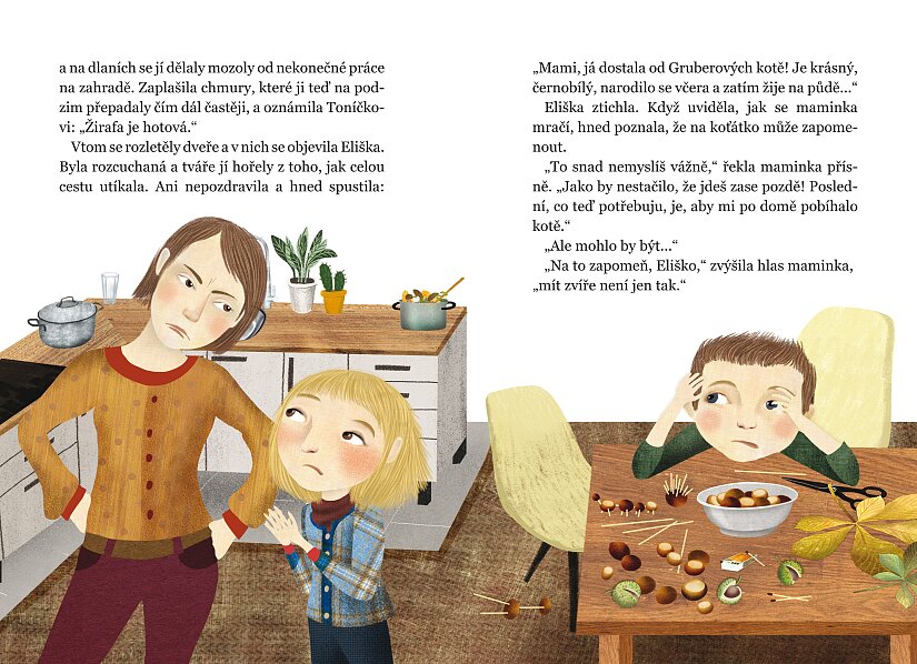 Ahoj! Jmenuju se Eliška a chodím do druhé třídy. Včera jsme ve škole dostali za úkol napsat slohovou práci na téma Můj domácí mazlíček. Já jediná ze všech nenapsala ani čárku. Všichni ze třídy mají alespoň křečka, rybičky nebo tak něco. To se pak píšou slohovky! Maminka ale nechce o žádném zvířeti ani slyšet. Držte mi palce, ať se mi podaří ji nějak přesvědčit. Strašně moc si totiž přeju kočku. Nebo ještě raději psa! Pro děti od 6 let.