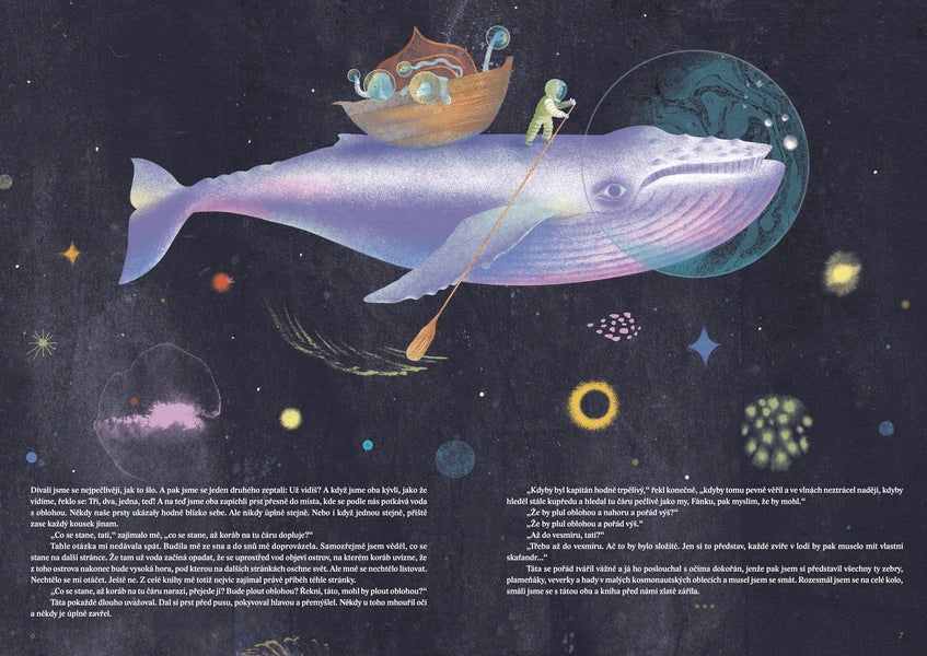 Trochu smutné, trochu tajemné, a přesto hravé ilustrace, ze kterých na každé stránce jemně svítí zlaté detaily, dávají čtenáři prostor vžít se do Fánkova světa, do jeho snů. Snů o lodích, o hvězdách a o všem dohromady.