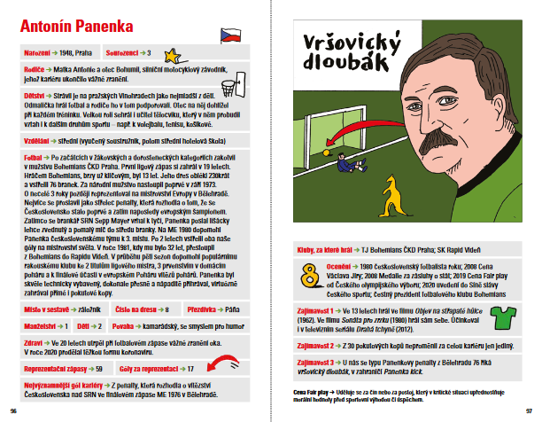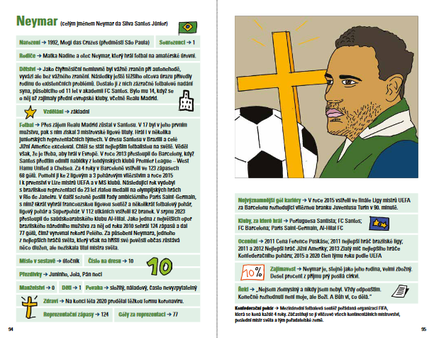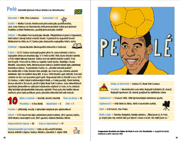 Víte, že Lionel Messi trpěl jako dítě poruchou růstu, že držitel Zlatého míče nejlepšího fotbalisty roku se stal prezidentem své země a že Petr Čech hrál v devíti letech v televizním seriálu jednu z hlavních rolí? Dozvíte se, kdo je rekordmanem v počtu vlastních gólů, který fotbalista má přezdívku Černý panter, komu je přičítán vynález tzv. padajícího listu nebo co znamená robinzonáda či placírka.