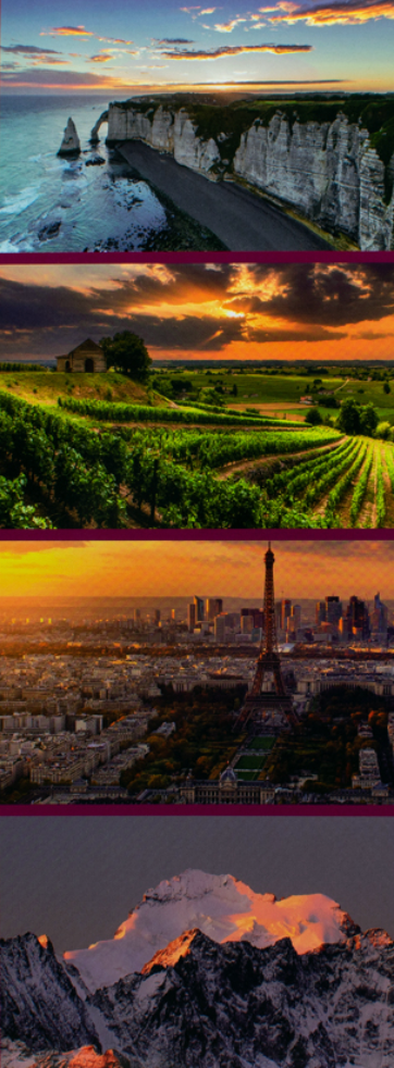 From the English Channel to Alsace and the French Alps to the Camargue and the Mediterranean, from Le Mans to Perpignan and the Pyrenees, from Bordeaux to the Basque Country, every landscape has its own specialities and facets. In this grandiose kaleidoscope of desires, everyone can find the piece of France that suits them.