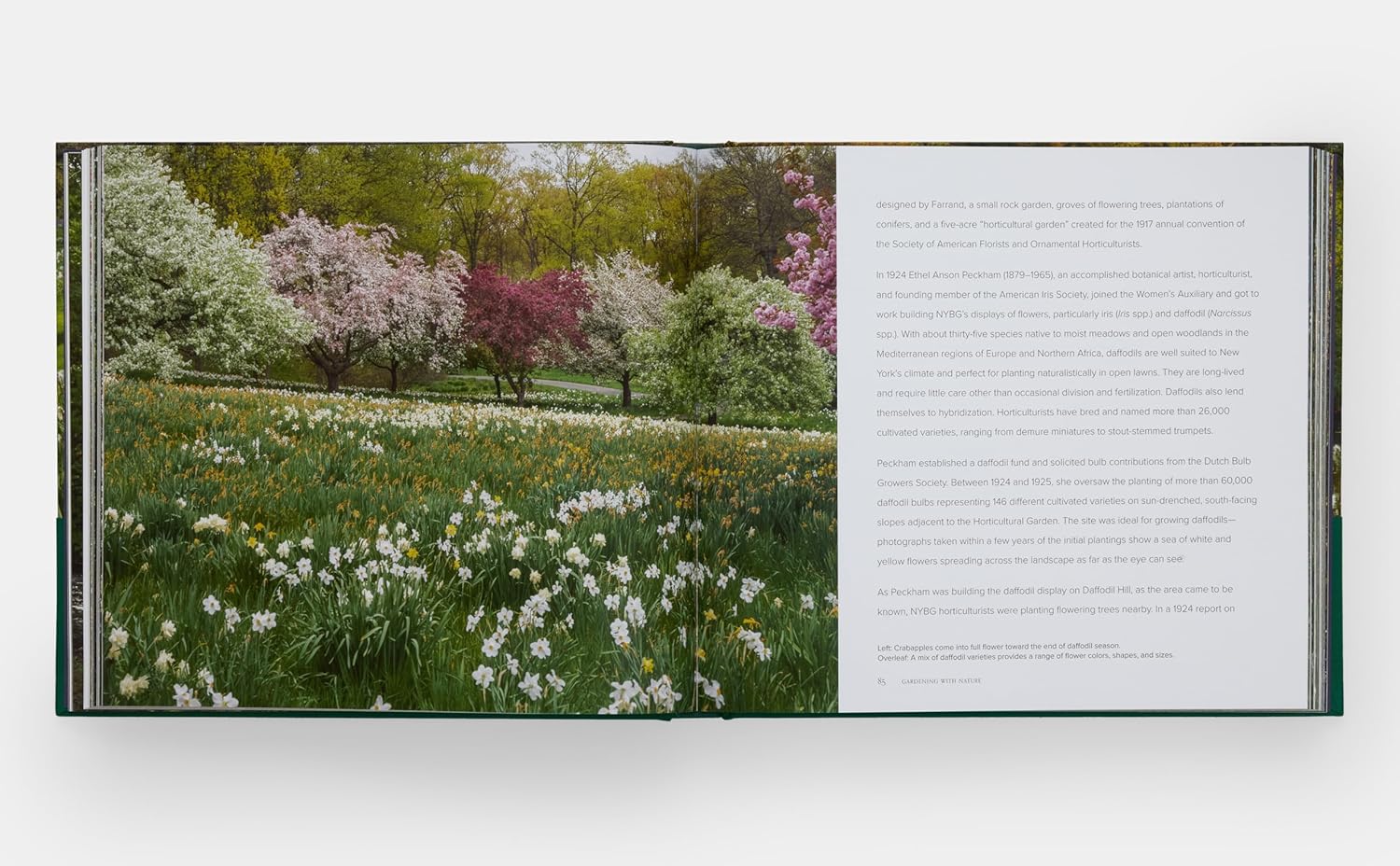 Today, NYBG embodies the principles of sustainable horticulture, and Gardening with Nature demonstrates their application. This richly illustrated new book highlights seven distinct horticultural environments captured by photographer Larry Lederman. Through his lush images, readers will witness the process of decay and regeneration in the Thain Family Forest, the carpet of millions of naturalized daffodils on Daffodil Hill, the vibrant azaleas emerging from rocky outcrops and sheltered by majestic trees, the recently installed Native Plant Garden, and more. Featuring authoritative text by Todd A. Forrest – complemented by historic images and Lederman’s contemporary photographs – Gardening with Nature offers a model for professional and home gardeners alike, encouraging and inspiring readers to adopt sustainable, nature-based processes and techniques.