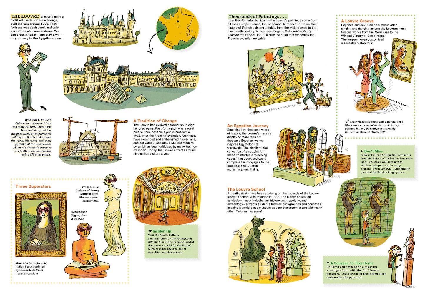 From Bilbao to Beijing, from New York to the Netherlands, explore the wonders of 13 extraordinary museums in this “great big” oversized book for readers 8 to 108. Whether you’re visiting Mexico City’s Frida Kahlo Museum, Paris’s treasured Louvre, or New York City’s American Museum of Natural History, you’ll be accompanied by the very best guides: curators, architects, landscape designers, artists . . . but also some more unexpected guests, like the beloved cats of St. Petersburg’s Hermitage, or the guardian of Rome’s Vatican Museums who carries hundreds of keys while making his rounds through the Sistine Chapel and beyond!