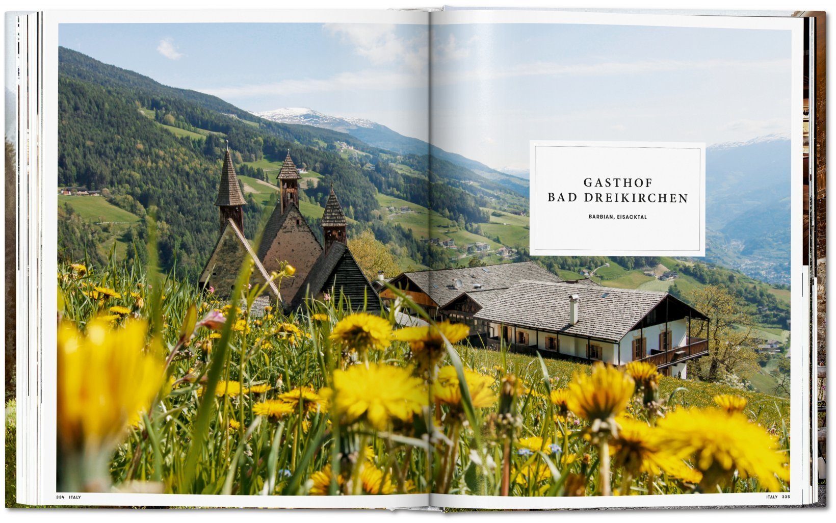 Flowering mountain slopes and traditional meadows. Icy glaciers and majestic summits. With their untouched nature and raw beauty, the Alps have always been a source of fascination. Angelika Taschen presents the best accommodation for Alpinists – historic inns, guesthouses, monasteries, mountain huts, chalets, palazzi, design hotels, even a youth hostel.