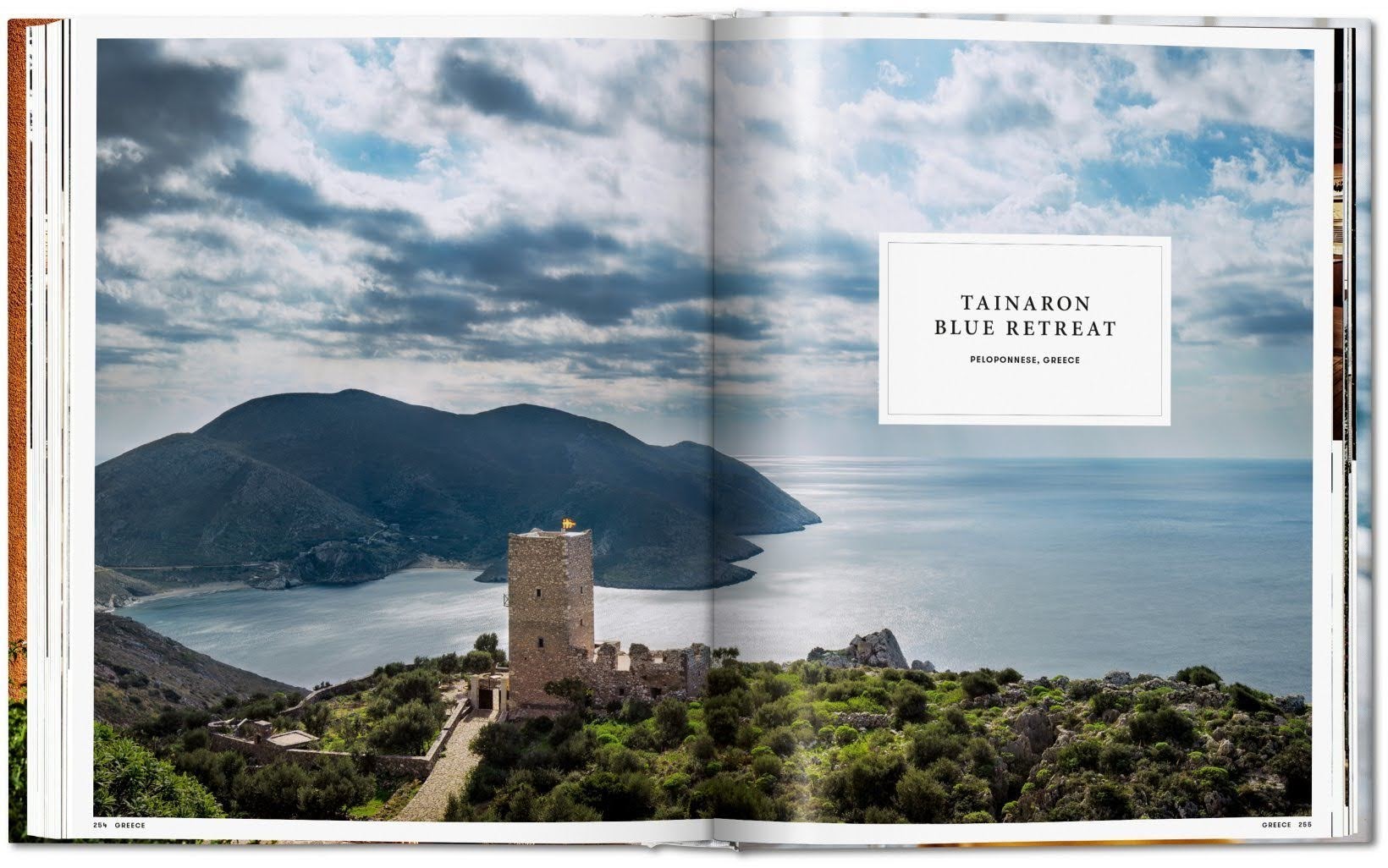 Angelika Taschen set out in search of the most beautiful hotels on a great variety of coasts, islands and beaches, taking you on a journey to the luxurious Hotel du Cap-Eden-Roc and the ultra-chic Les Roches Rouges on the Côte d’Azur, to the little-known Pardini’s Hermitage on the Italian island of Giglio, which is only accessible by boat or on foot, and to Bodrum in Turkey, where the elegant Amanruya resort lies hidden in one of the most stunning bays in the Mediterranean. She also presents new hotel concepts, great architecture and creative design – for example the finca Menorca Experimental on the Balearic Islands, the modernist Villa Dubrovnik in Croatia and Dexamenes on the Peloponnese, where new life was breathed into decommissioned wine tanks.