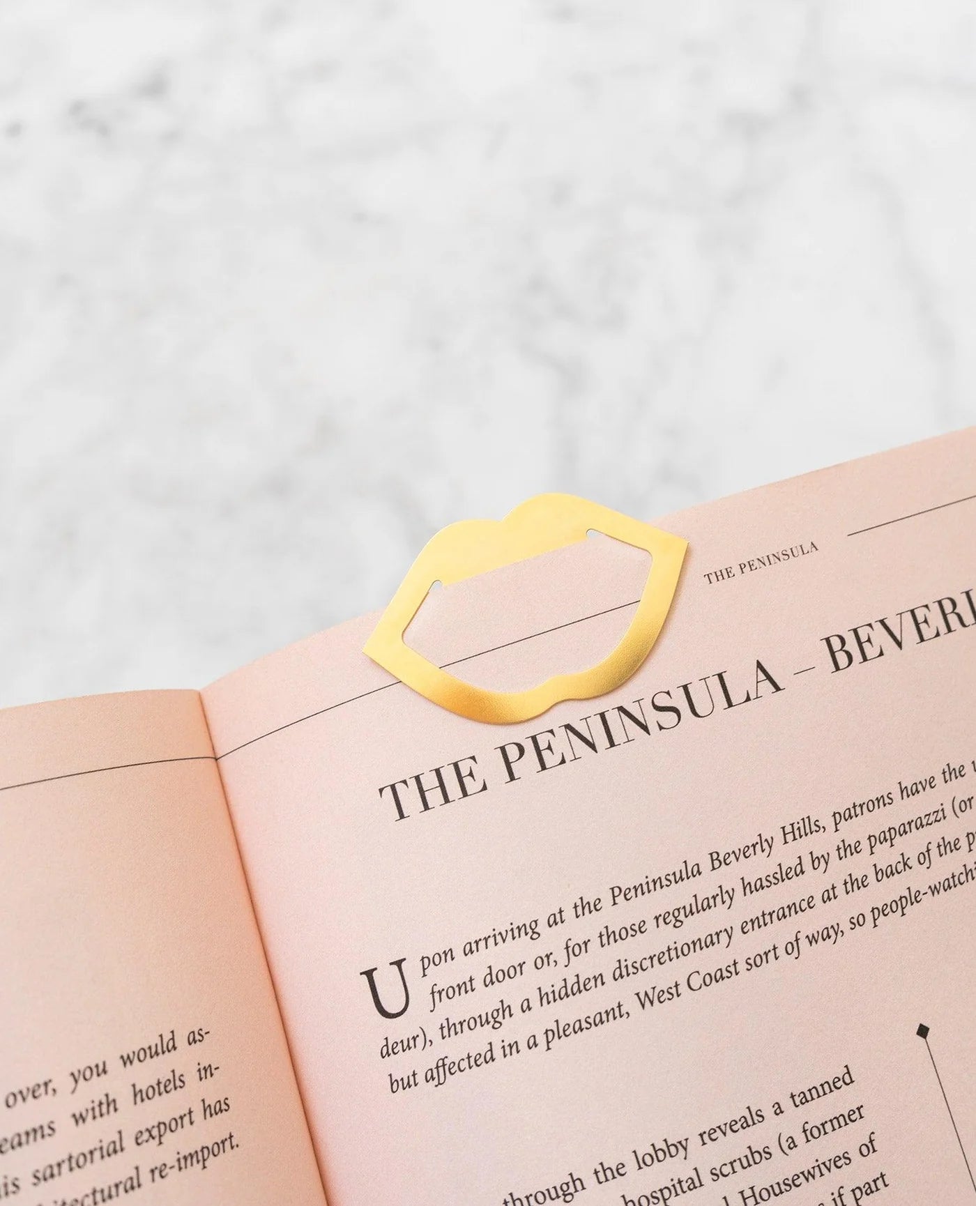 Zlatý víceúčelový kovový klip (cca 4,5 × 4 cm), který lze použít jako stylovou záložku, k přichycení dokumentů nebo v diáři.