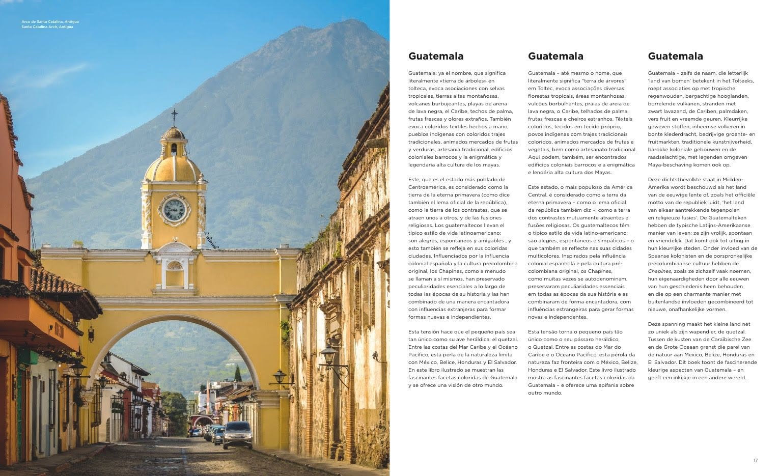 Guatemala is considered the land of eternal spring. Tropical rain forests, mountainous highlands, bubbling volcanoes, black lava sand beaches, fresh fruits and strange smells--this illustrated book shows the fascinatingly colorful facets of the country and gives insights into another world.