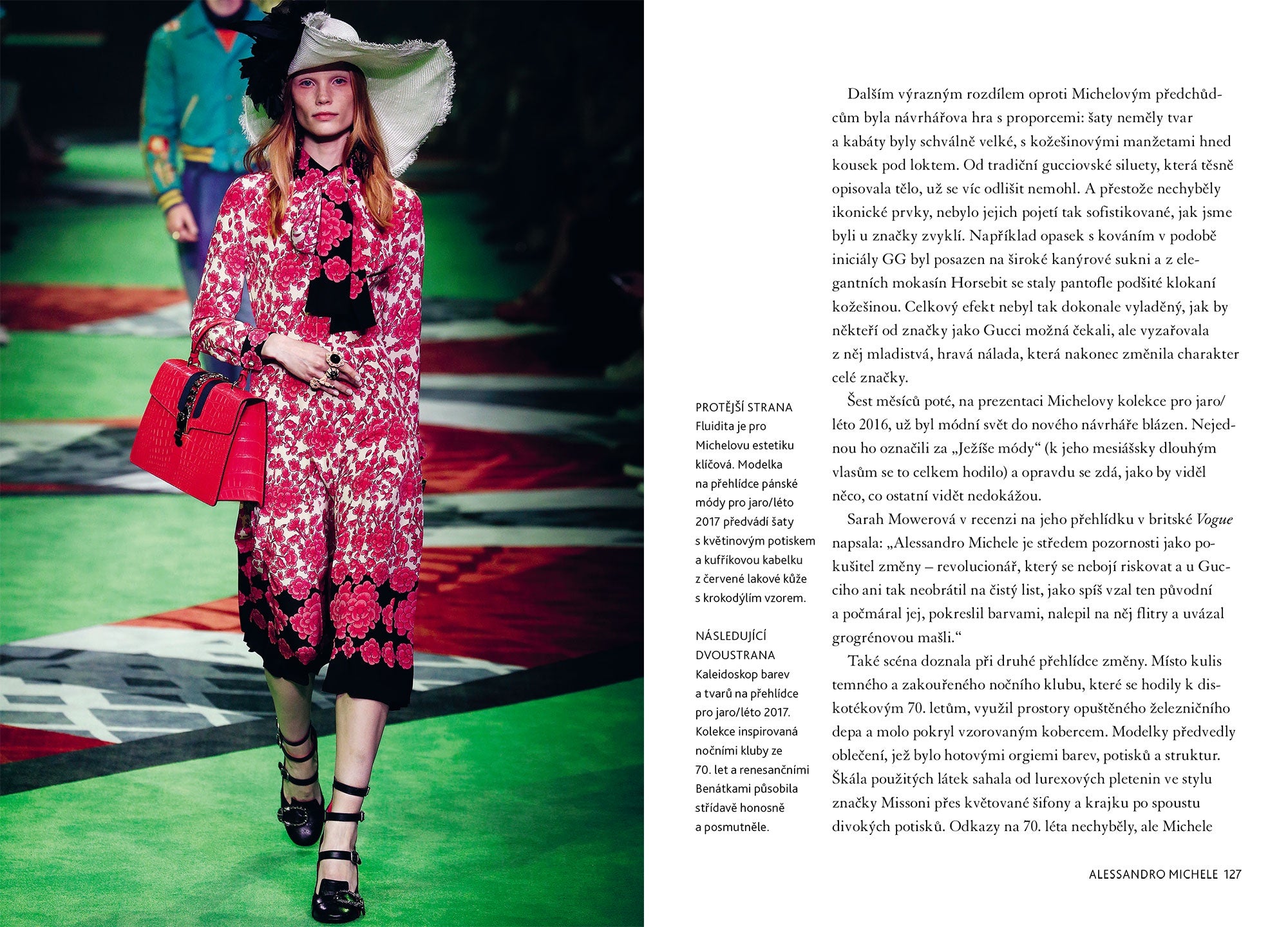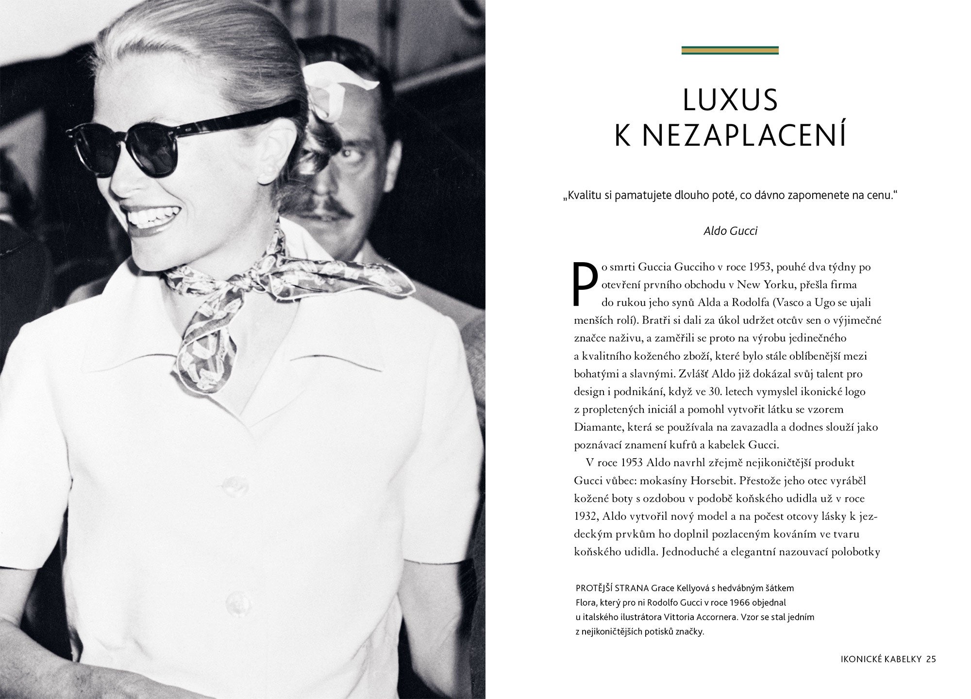 Gucci do kabelky vypráví příběh značky od samých začátků. Prozrazuje, jak vznikaly ikonické designy a odkrývá pozadí sporů uvnitř rodiny, které společnost málem přivedly do záhuby. Velkou pozornost věnuje návrhářům Tomu Fordovi, Fridě Giannini a Alessandru Michelovi, kteří značku Gucci doprovodili do 21. století a získali pro ni novou generaci fanoušků. Přes sto pečlivě vybraných fotografií seznamuje se slavnou módou i neméně poutavým příběhem klanu Gucci.