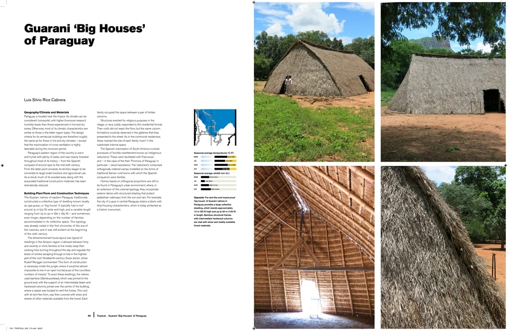 The core of the book is arranged by climate zone, from desert to tropical, temperate to arctic. Within each section, buildings are presented regionally, showing how climatic conditions and vegetation affect the evolution of building styles. This central part is bookended by a range of essays exploring the economic and anthropological aspects, while the reference section offers information on materials science and engineering, including how buildings have been adapted to contend with natural disasters.