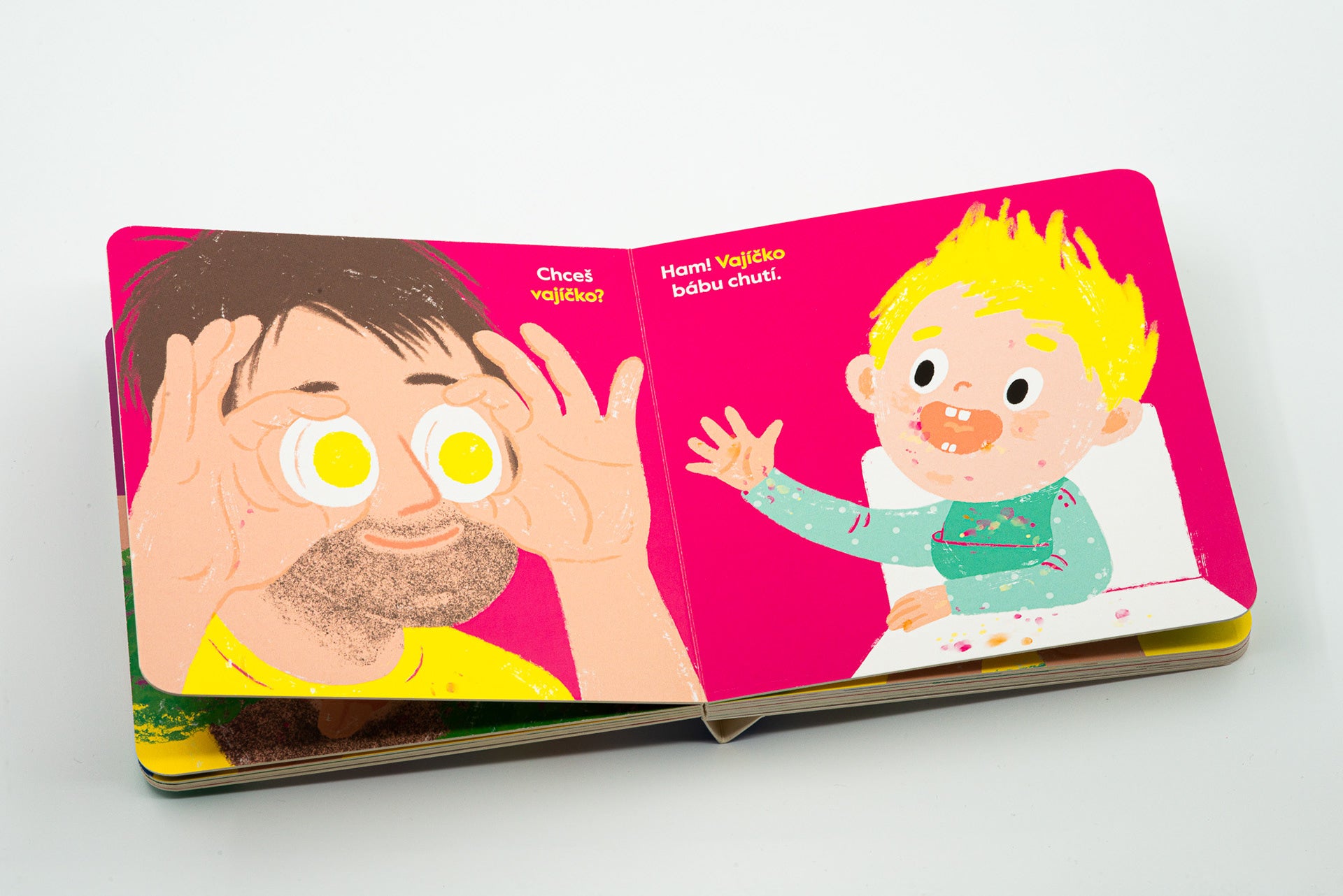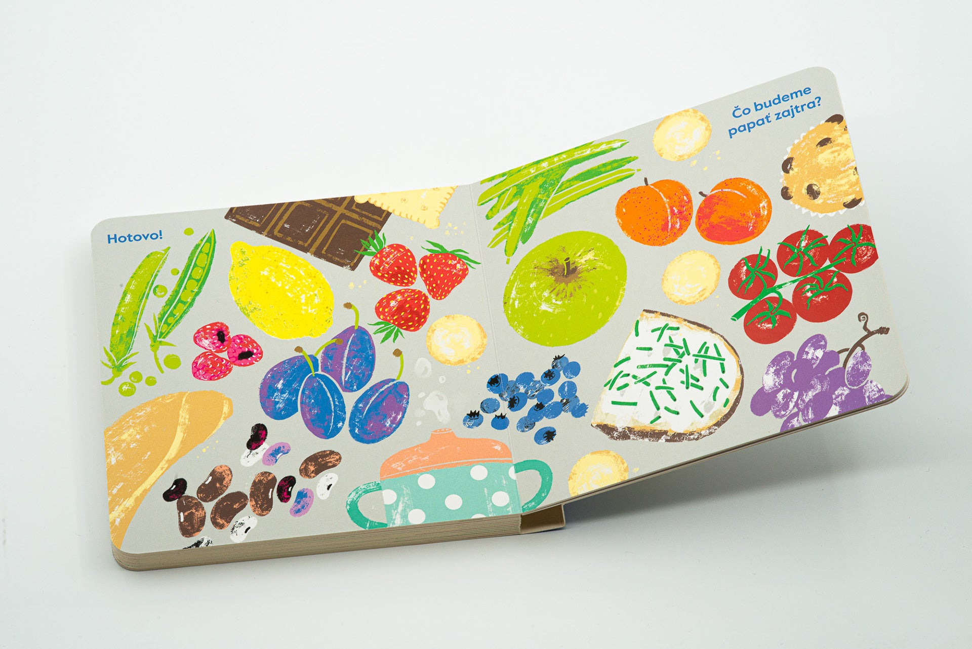 Leporelo pre najmenších od autorky Strateného šálu. Knižka určená na rozvoj reči. Kŕmenie detí, to je celá veda, všakže?! A čo ešte len rozprávanie, to tiež nie je až také jednoduché, ako by sa mohlo na prvý pohľad zdať. V rukách držíte knižku určenú práve na rozvoj reči a rozšírenie slovnej zásoby. Napísala ju logopedička a výberom slov i dĺžkou viet ju ušila pre najmenšie deti. Témou knihy je jedlo, pretože kŕmenie patrí medzi prvé rutiny malých detí. Tie sú pre dieťa predvídateľné a ľahšie sa počas nich učí.