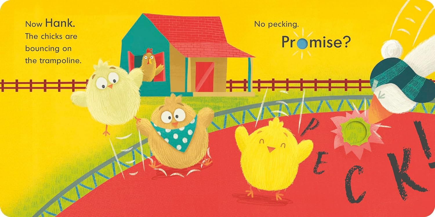Look out! Hank’s on the farm, and he’s causing chaos. He’s burst the pigs’ inflatable, made a hole in the chicks’ trampoline and unravelled poor Sheep’s knitting! When Bull shows up, it looks like Hank has finally met his match. Will our favourite pesky, pecky goose learn to rein it in? Or will his beak get him into trouble yet again?
