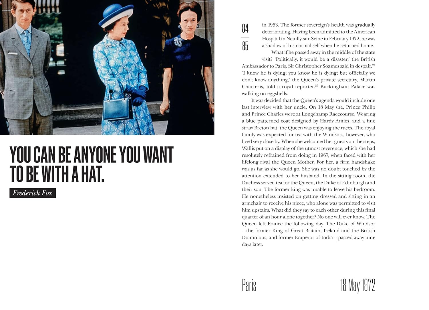 The Hats of the Queen examines 50 iconic headpieces adorned by the Queen during her reign, uncovering the royal, political, and fashion landscape of the time. In her 70 years in power, Queen Elizabeth II has made her mark on history, navigating the ups and downs of the past century, and wearing many hats - literally and figuratively. In 1933, little Elizabeth, sits in a carriage alongside her grandfather King George V, wearing a round, pink hat hemmed with flowers. In 2020, the year the world fell into crisis with the covid pandemic, the sovereign dons a very similar hat. Nearly 100 years have passed between these two images, a century of politics, diplomacy, and fashion, which is told, in these pages, through the little-known story of the Queen's hats. With a foreword by royal correspondent Alastair Bruce, The Hats of the Queen is a beautiful and informative look back on the life and times of her majesty through these iconic accessories.