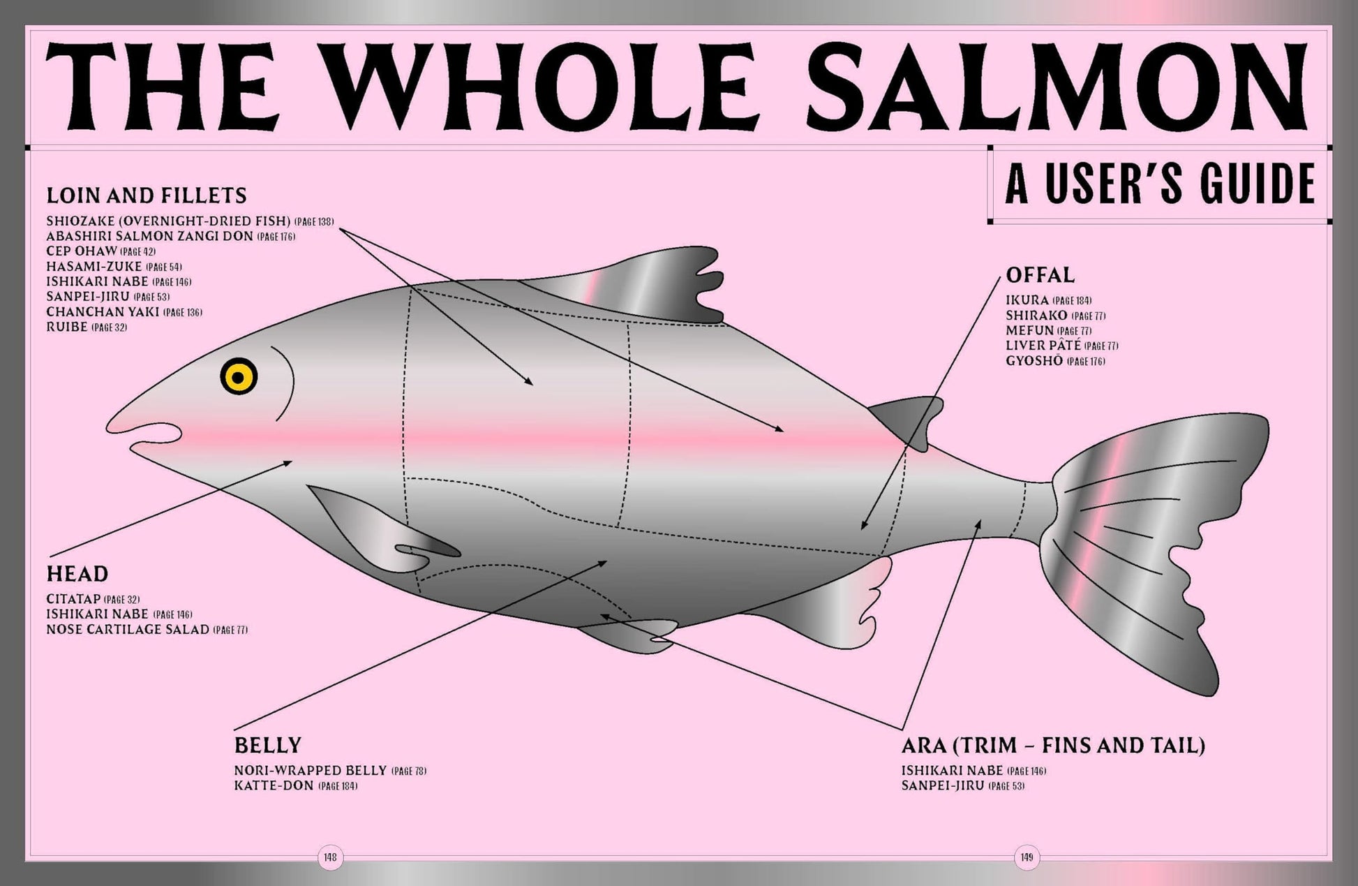The recipes mostly fall into two categories: traditional, regional dishes and homages to specific dishes. There are also four Ainu recipes, which have been contributed by an Ainu chef, Hiroaki Kon.