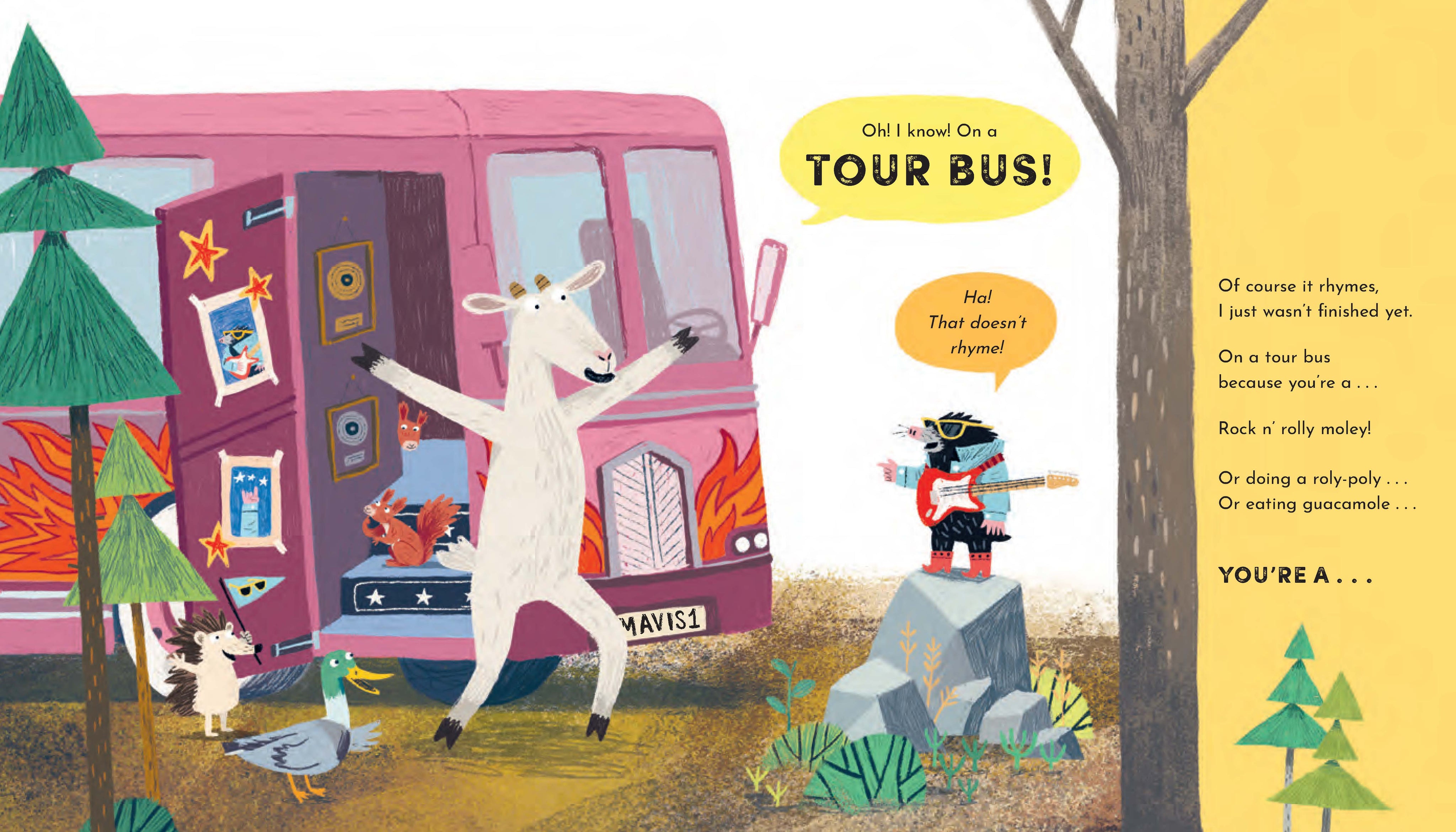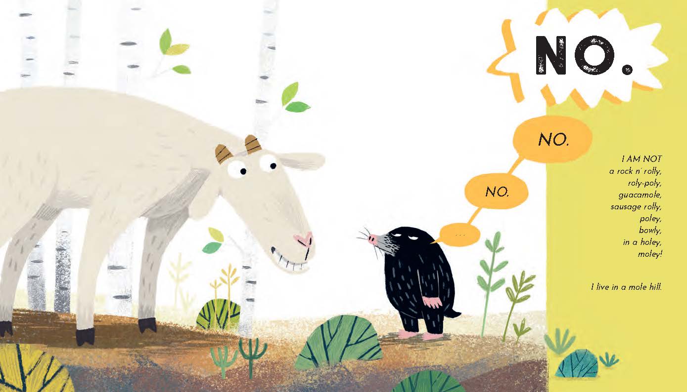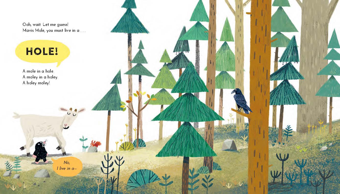 Gus the Goat loves guessing. And he loves rhyming. So, when he meets Mavis Mole, he can't help himself trying to guess where she lives. Is it in a hole? In a bowl!? In a Sausage ROLL!! No, not quite . . .