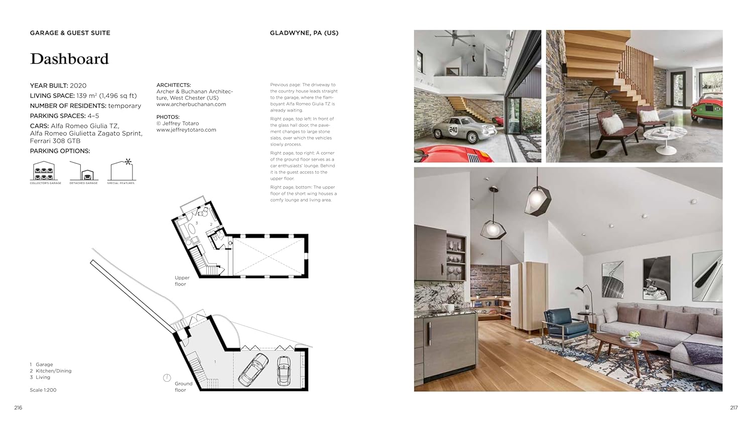 Velkoformátové fotografie 45 mezinárodních projektů, v nichž architektura a automobil splývají v promyšlený celek: domy, kde garáž rozhodně není skladiště, ale srdce celého domu.