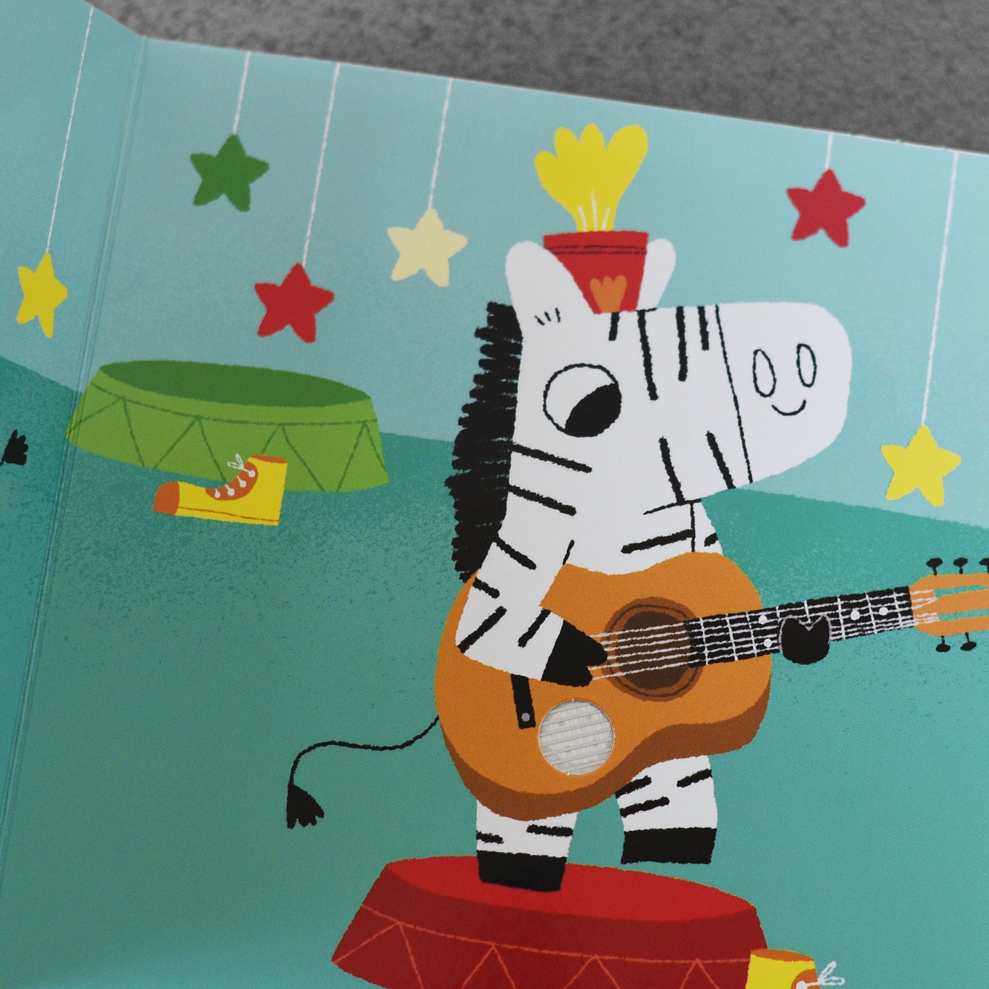 14 stran, 150 x 150 mm, leporelo, lesklé lamino, zvukový strojek
