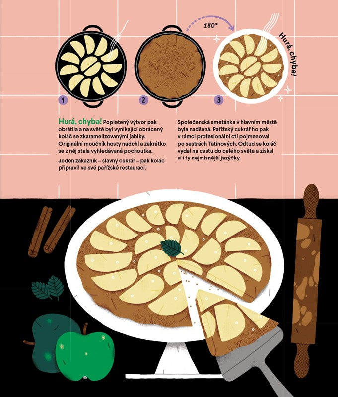 Věděli jste, že mnoho vynálezů vzniklo jen díky náhodě? Chipsy, ohňostroj, sirky, káva, vteřinové lepidlo… Neexistovaly by, kdyby jejich tvůrci a tvůrkyně neudělali chybu. Ať už se učíme, bádáme nebo tvoříme, není třeba se chyb bát. Prostřednictvím pokusů a omylů totiž často nacházíme správné řešení. Někdy chyba nebo náhoda dokonce zachrání miliony životů, jako například objev penicilinu. Jindy zase vede k výtvoru, který nám usnadní či zpříjemní život, jako třeba suchý zip nebo lahodný francouzský dezert Tarte Tatin. Kniha Hurá, chyba! je ilustrovaná kronika plná chyb, díky níž se na vlastní nešikovnost začnete dívat s pochopením.