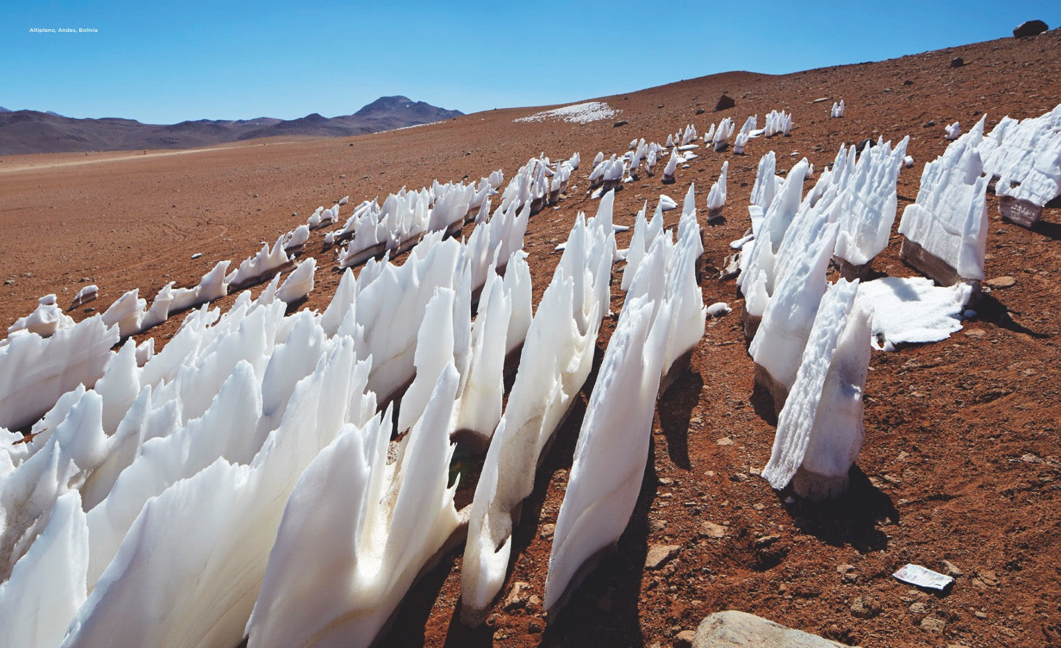 Viewed from space, the Earth appears as a "blue planet"; its surface is covered to a large extent by water. The regions around the South and North Pole are particularly striking. The Antarctic is almost completely covered by an ice shield up to several thousand meters (several miles) thick, and in the Arctic, large areas around the North Pole and Greenland are covered by ice. The huge ice shelf areas in Antarctica are particularly impressive, but there is also ice in other parts of the world: even at the equator high peaks are glaciated. In the mountains, glaciers represent an essential freshwater reserve that feeds many rivers. Water is a very special liquid, as it at its highest density and smallest volume at 4 °C (39 °C). This property, described by physicists as the anomaly of water, means that ice is lighter than water, which is why icebergs float on water and lakes freeze on the surface. Ice forms a hostile environment, but humans and animals have adapted to life on the ice. Indigenous peoples such as the Inuit in the Arctic have developed survival strategies over thousands of years. However, the traditional way of life of Arctic inhabitants is changing, and they are being forced to adapt. Some species such as the polar bear are threatened with extinction. This is due to climate change, which is causing temperatures to rise worldwide, particularly rapidly in the Arctic and Antarctic. As a result, glaciers are melting ever more quickly. Ice, which has always fascinated people with its bizarre beauty, is disappearing, and the effects on the environment and the economy are serious.