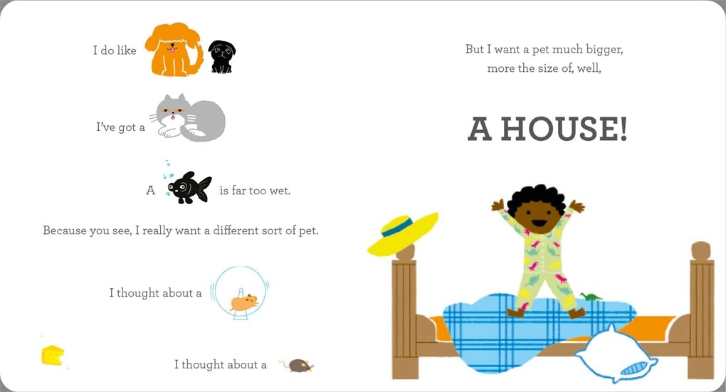 A little girl dreams of having her very own pet. But what kind of animal would make the best companion? A mouse is too small, a cat is too ordinary, and a fish is too . . . wet! As she plays with her toy dinosaur, inspiration strikes. What about a real, live dinosaur? She could ride it to school. It would need lots of food to eat, a swimming pool to drink from, and a dino flap so it could come and go!