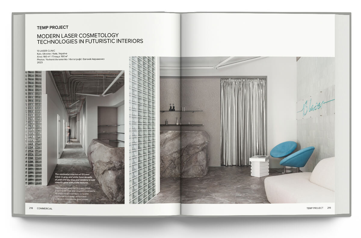 The Interior Design book covers commercial and residential real estate projects that were implemented and/or commissioned during the full-scale war in Ukraine: from 2022 to 2024. The edition includes objects from 34 Ukrainian designers and studios. The publication is not just about modern interiors, but, above all, about talented Ukrainians – designers and architects who continue to work, create, and fulfill their own ideas and dreams for their clients even in the most difficult times for life and business. This book is the third edition of the series on interior design by Creative Publishing. Many professionals have left Ukraine due to the full-scale invasion or are looking for new markets, so the editors have also added their foreign projects created during the war to this book.
