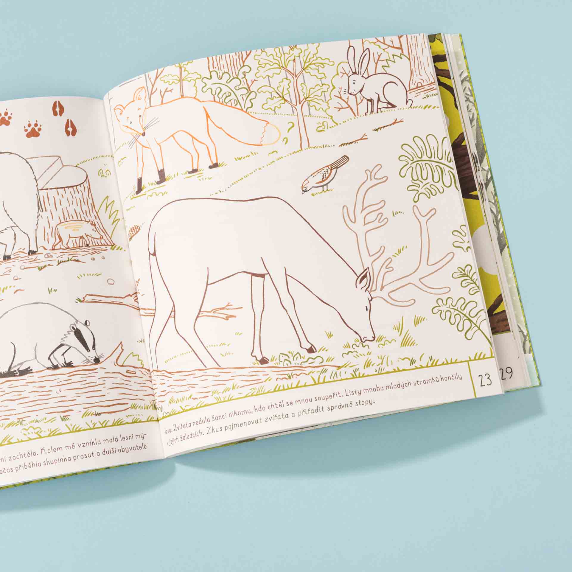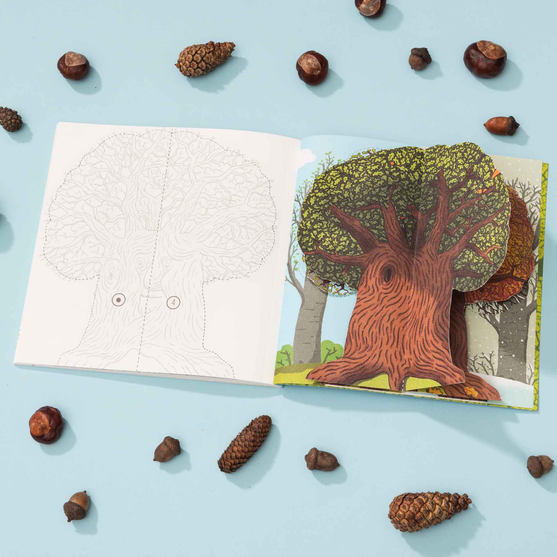Učíme se hrou. Uvnitř najdete plno zábavných aktivit s úžasnými ilustracemi Martina Krkoška. Průvodcem vám bude starý DUB, který postupně odvypráví celý svůj životní příběh. Děti se hravou formou dozví zajímavosti z rostlinné i živočišné říše. Na konci najdete i skládačku na téma čtyři roční období.