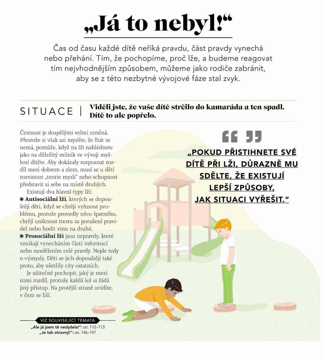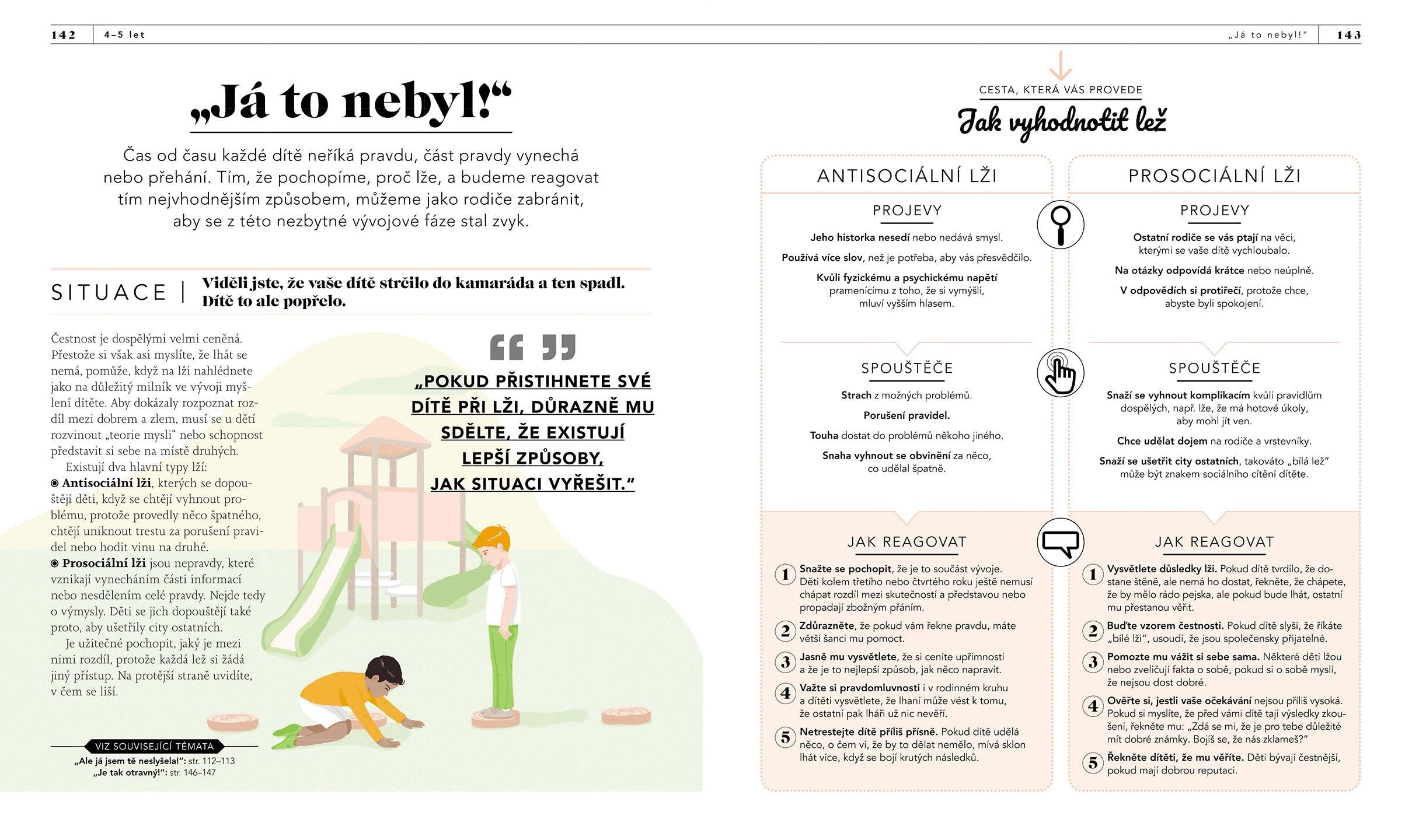 Jaké myšlenkové pochody se ukrývají za chováním vašeho dítěte? Seznamte se s nejnovějšími poznatky z dětské psychologie a neurologie a přistupujte ke svému dítěti s nově nabytou jistotou. Zjistěte, co vaše dítě skutečně myslí tím, když říká „Podívej, co jsem udělal“ nebo „Ale mně se nechce spát“ nebo „Ztrapňuješ mě“, a co může být příčinou výbuchů, při kterých ani samo dítě nedokáže vyjádřit, co se mu honí hlavou. Kniha nastiňuje více než 100 situací a objasňuje nejenom myšlenkové pochody dítěte, ale bere v potaz také pocity rodiče. Díky tomu zvládnete uspokojivě vyřešit jakýkoliv výchovný problém. Také jsou zde zachyceny zásadní milníky ve vývoji dítěte v období mezi druhým a sedmým rokem a všechny zásadní situace, které mohou nastat. To vše vám má pomoci, abyste si s dítětem vytvořili trvale hezký vztah.