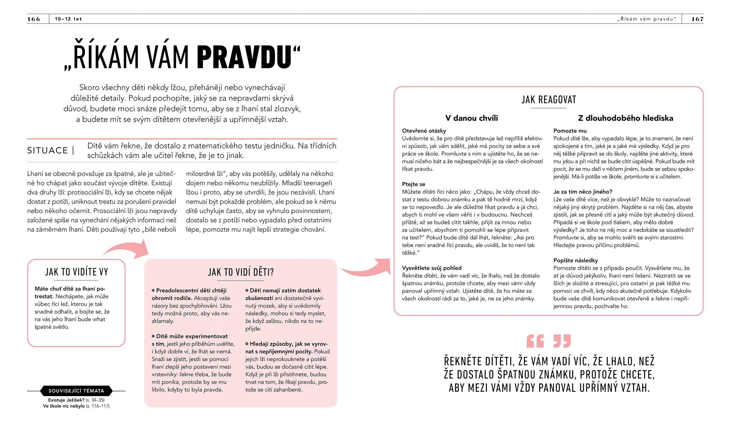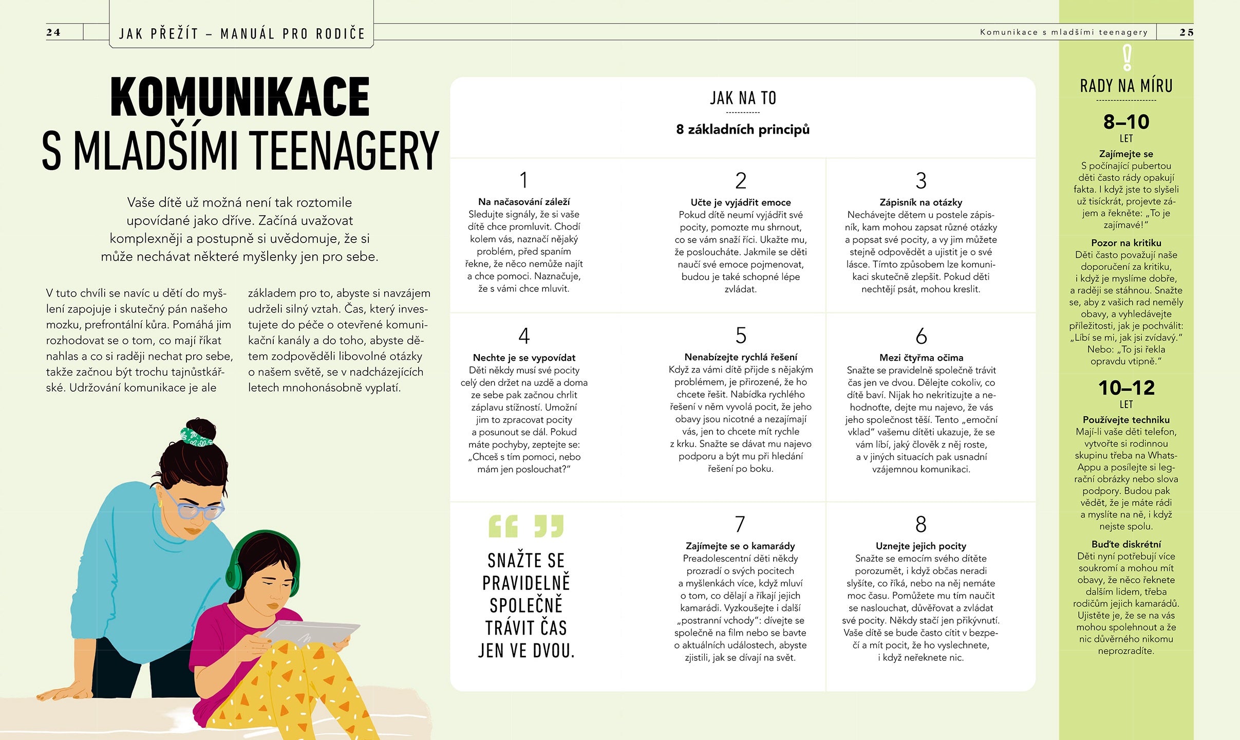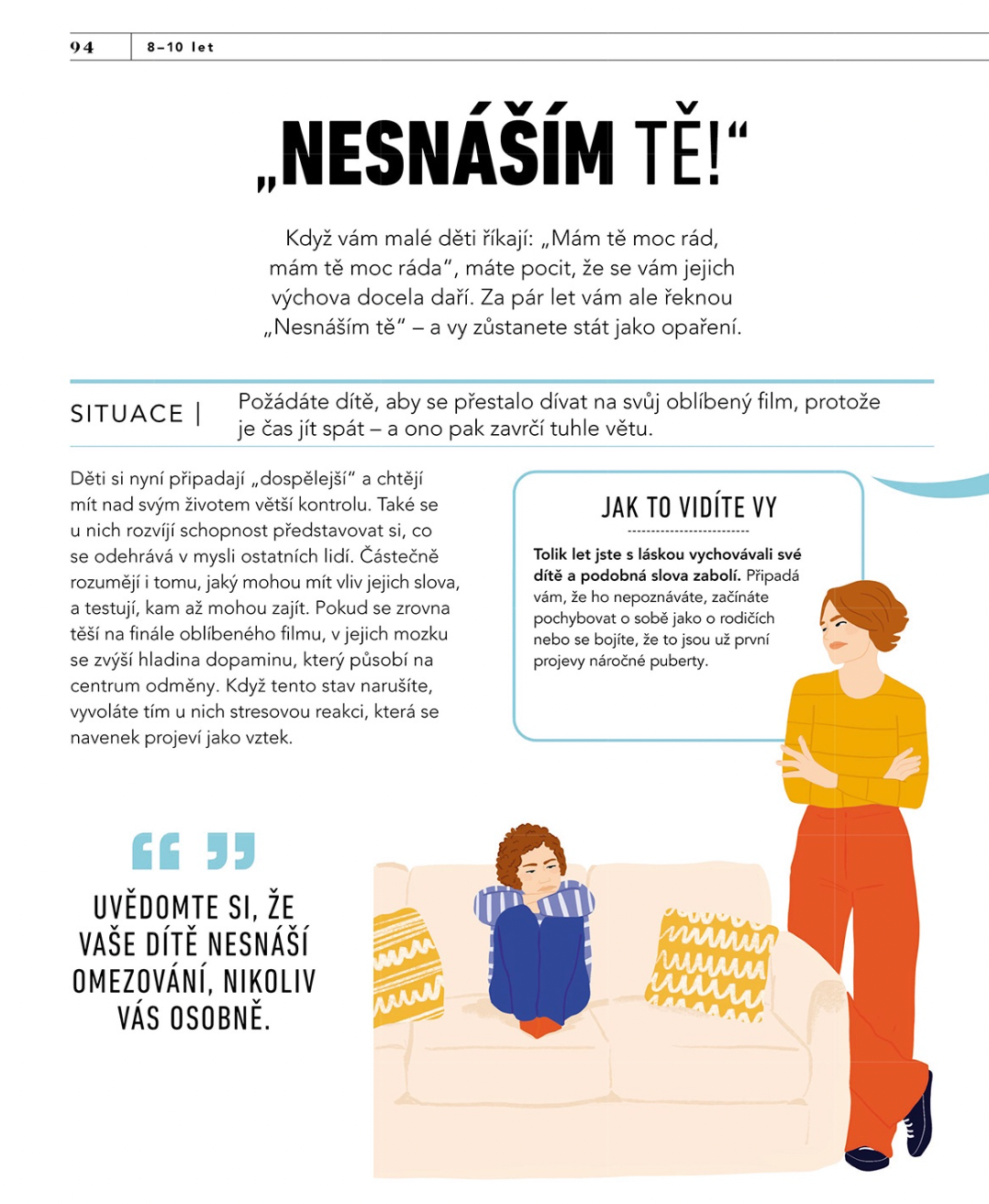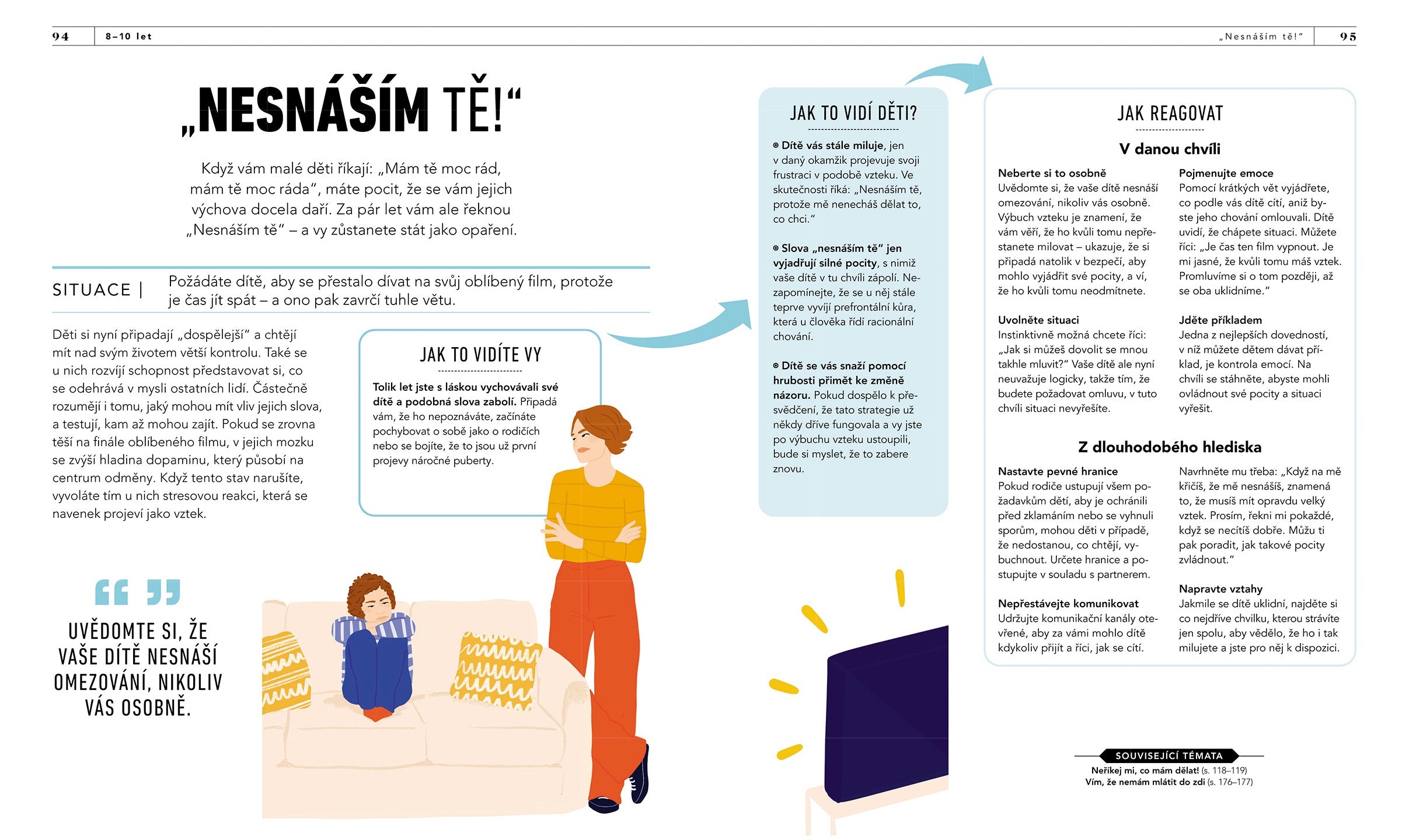Tato praktická příručka o výchově dětí vychází z dětské psychologie založené na nejnovějších poznatcích a zkoumá vývoj dětí v tomto přechodném období. Ukáže vám, na co děti myslí, s čím se potýkají nebo co je trápí a jak se to dotýká rodičů. Autorka knih o výchově dětí Tanith Careyová a klinická psycholožka Angharad Rudkinová vám předkládají 75 situací z reálného života, kterým jako rodiče mladších teenagerů obvykle můžete čelit: od vět jako „Nesnáším tě!", „Už jen jednu hru", „Už nemusím do postele tak brzy", „To je pro mimina" přes konflikty s kamarády, problémy ve škole, nespokojenost s vlastním tělem a svými schopnostmi až po bezpečnost v online prostředí. Posuňte vztah se svými dětmi na vyšší úroveň a připravte se na náročné turbulentní roky dospívání, které vás teď doma čekají.