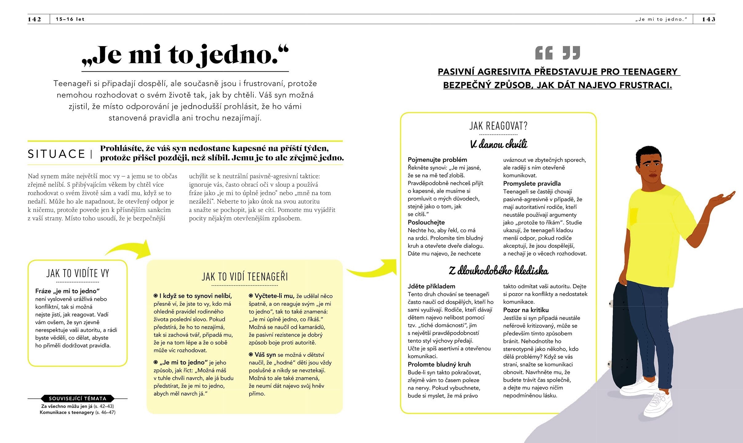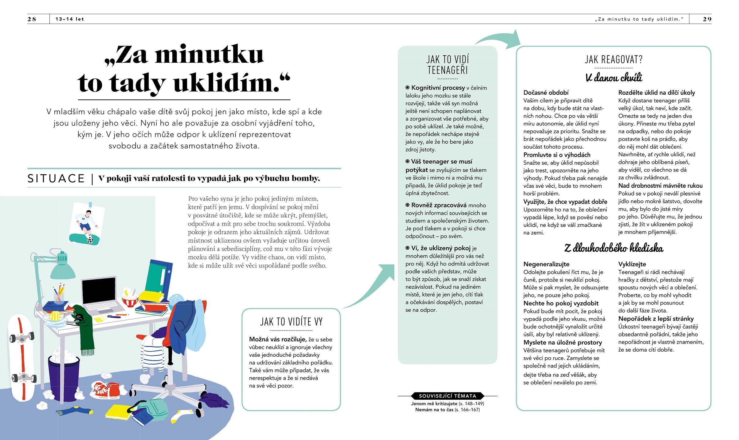 Být rodičem teenagera není žádný med. Vlivem změn v mozku i hormonální hladiny má vaše dítě najednou na leccos vlastní, tak odlišný názor, dostává se do situací, které nejsou vždy bezpečné, chce se osamostatnit… A na konflikty v rodině je zaděláno. Praktický rádce pro rodiče dospívajících dětí vysvětluje na základě nejnovějších vědeckých poznatků psychologie a neurologie, jaké jsou důvody chování teenagerů a jak na to máte reagovat – hned v dané chvíli i z odstupu. Na více než stovce běžných situací uvidíte, jak se k dítěti chovat: co dělat, když za sebou práskne dveřmi pokoje, jak postupovat, pokud máte obavy o jeho bezpečnost v online světě, jak se vyrovnat s tlakem vrstevníků nebo s počátky jeho sexuálního života. Kniha vám pomůže zhluboka se nadechnout a použít různé efektivní metody k okamžitému zklidnění emocionálně vypjatých situací, stejně jako pracovat s dlouhodobými strategiemi, jež mohou vylepšit vaše vztahy a pomoci zvládnout všechna úskalí, která život přináší.