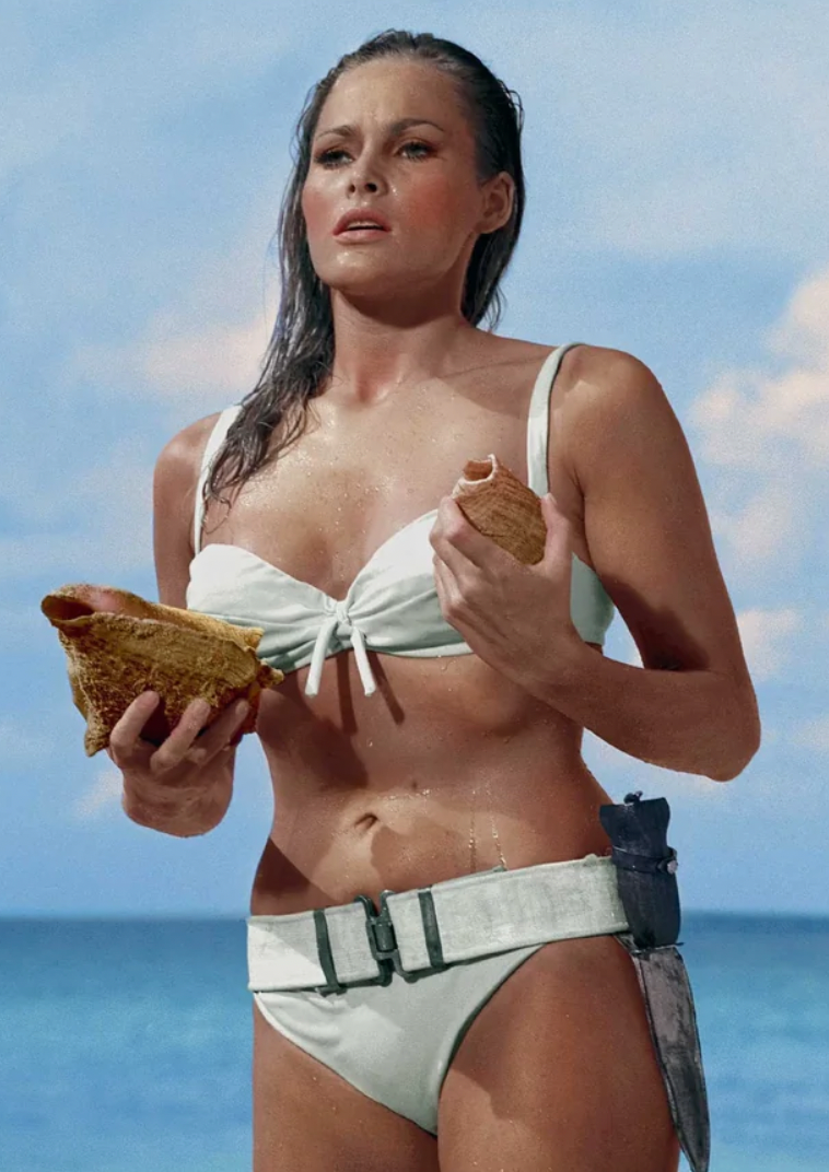 And all the most memorable moments are inside, like Ursula Andress emerging from the waves in that famous white bikini, to the homages to that scene: Halle Berry in a shocking orange La Perla bathing suit in Die Another Day, and, in a completely unplanned and now completely viral take, Daniel Craig, also in La Perla, on a Bahamian beach in Casino Royale (one of the trunks used was later auctioned for £44,450).