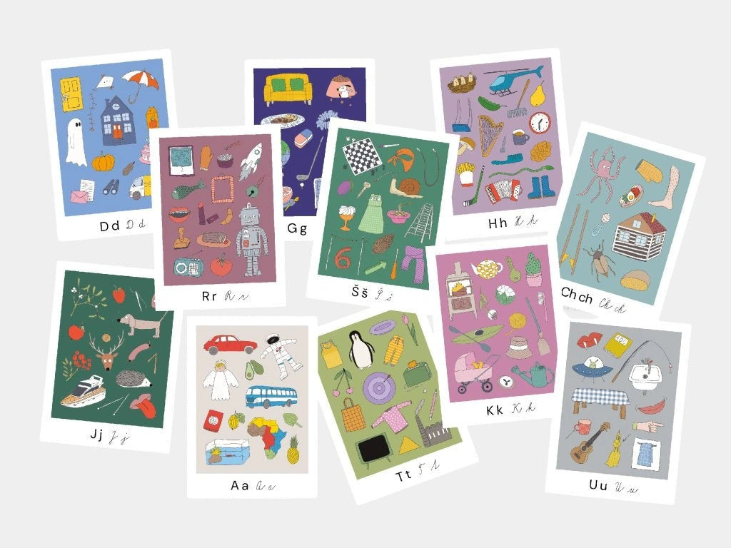 Na každé kartě jsou obrázky začínající na dané písmeno, vše v krásně zdobené krabičce.