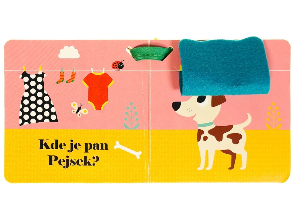Knížka vhodná pro nejmenší děti a pro jejich první seznamovaní se světem. Rozvíjí jejich zrak, hmat a motorické schopnosti. Děti budou hledat schovaná zvířátka, měkké detaily z plsti umožní dětem zlepšovat poznávání světa hmatem. Na konci knihy na děti vykoukne překvapení. V malém kulatém zrcátku uvidí… Kohopak? No přece sebe! Díky malým rozměrům a připevnění ke kočárku je tato knížečka skvělým parťákem na cesty.