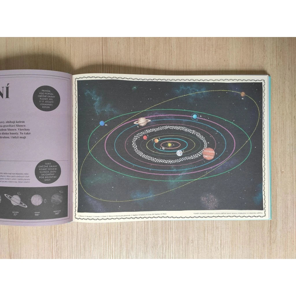 Ta malá modrá tečka v nekonečném moři vesmíru je naším domovem. Nejsme zde ale sami. Hřeje nás naše hvězda, které říkáme Slunce, a společně se Zemí ji obíhá i dalších sedm planet a množství dalších těles. Horkem sálající Venuši, rudě zářící Mars, prstenci obepnutý Saturn či Jupiter s jeho magickým okem doplňují stovky měsíců, komet i dalších tajemných objektů.Aina Bestard svými ilustracemi vzdává poctu umělcům a astronomům 19. století, kteří dokázali vzbudit zájem o vesmír mezi lidmi všech generací i vrstev. Zároveň zohledňuje nejnovější poznatky o naší Sluneční soustavě a vytváří tak knihu krásnou a poučnou zároveň.