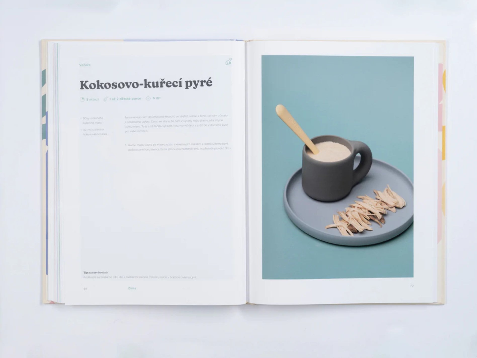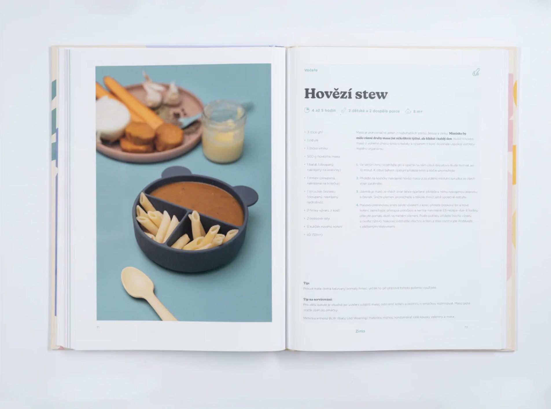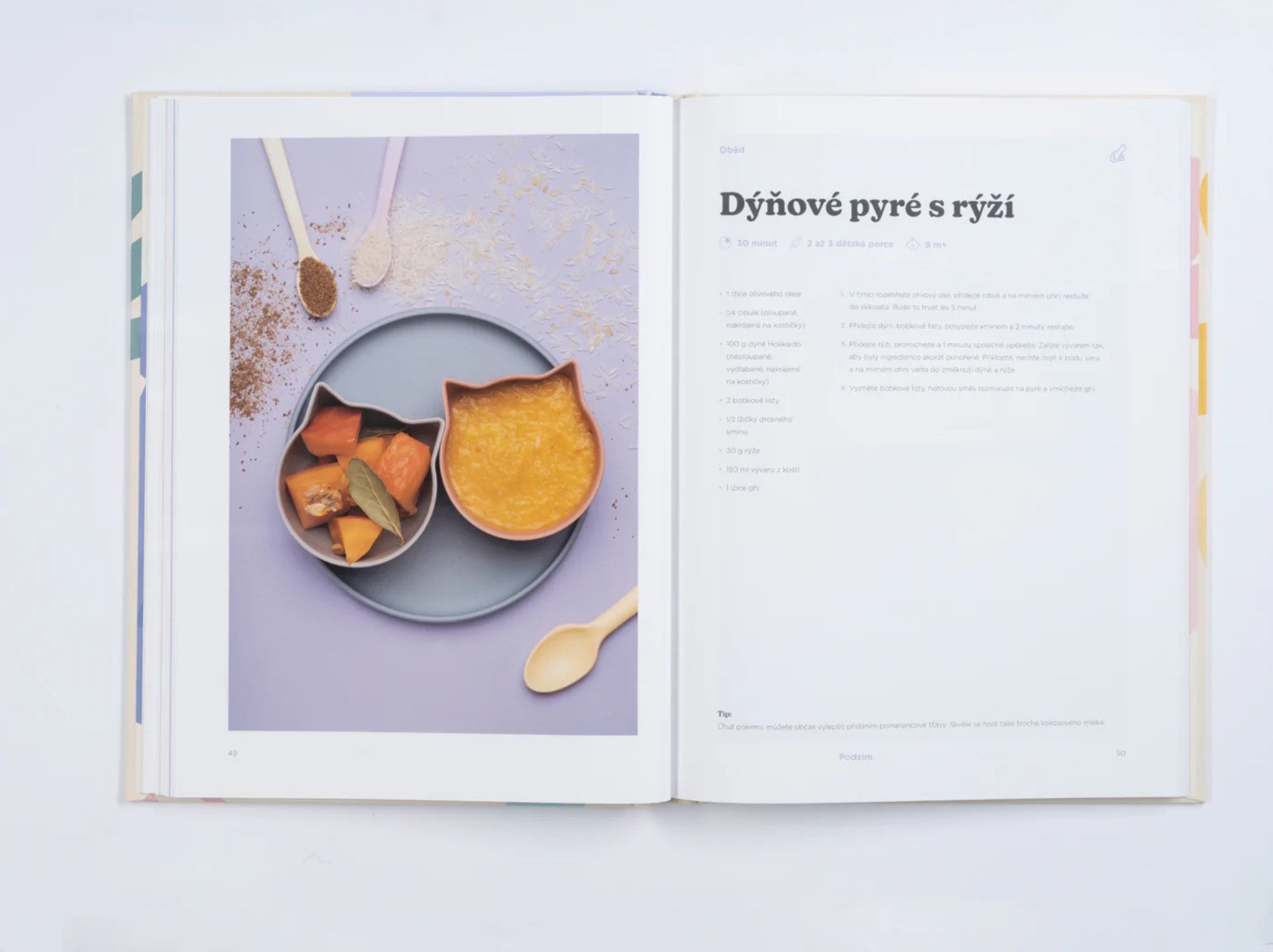Nechybí ani spousta zajímavých a důležitých informací o stravování, výběru surovin, doporučeném množství, informace o nutričních výhodách jídel a také doporučení, kdy jídlo dítěti představit a zařadit do jídelníčku.
