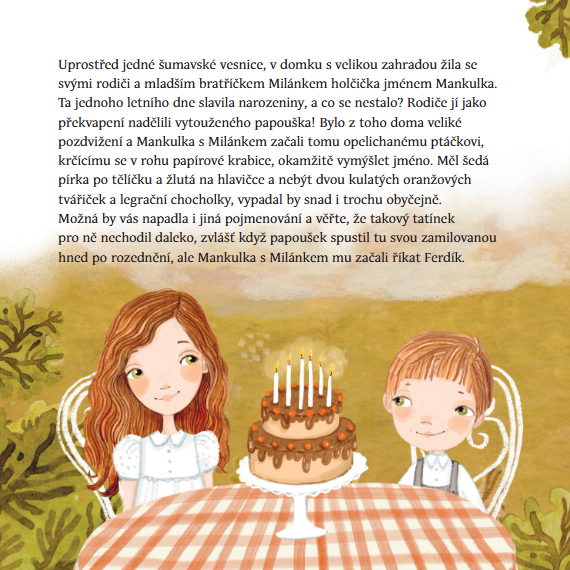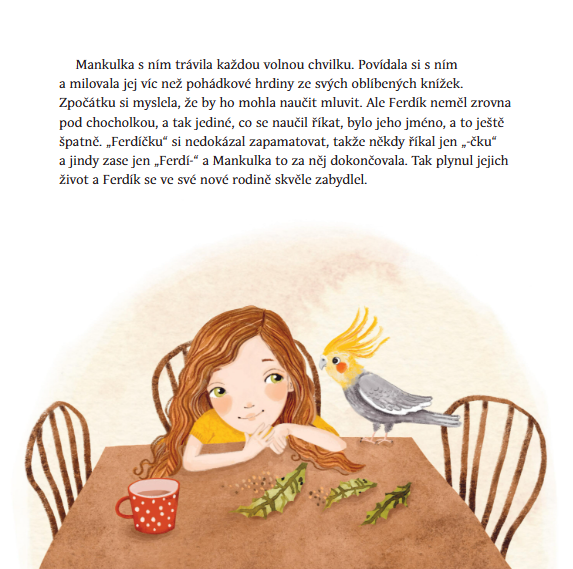 Mankulka si dlouho přeje mít opravdické zvířátko. Konečně dostane od rodičů vytouženého papouška. Rychle si ho zamiluje a učí se o ptáčka starat. Mění mu vodu, dává mu zrní, mazlí se s ním a šeptá mu svá holčičí tajemství. Jednoho dne jí však Ferdík uletí. Podaří se jí ptáčka najít a získat zpět? A jaká dobrodružství papouška na jeho cestě čekají?