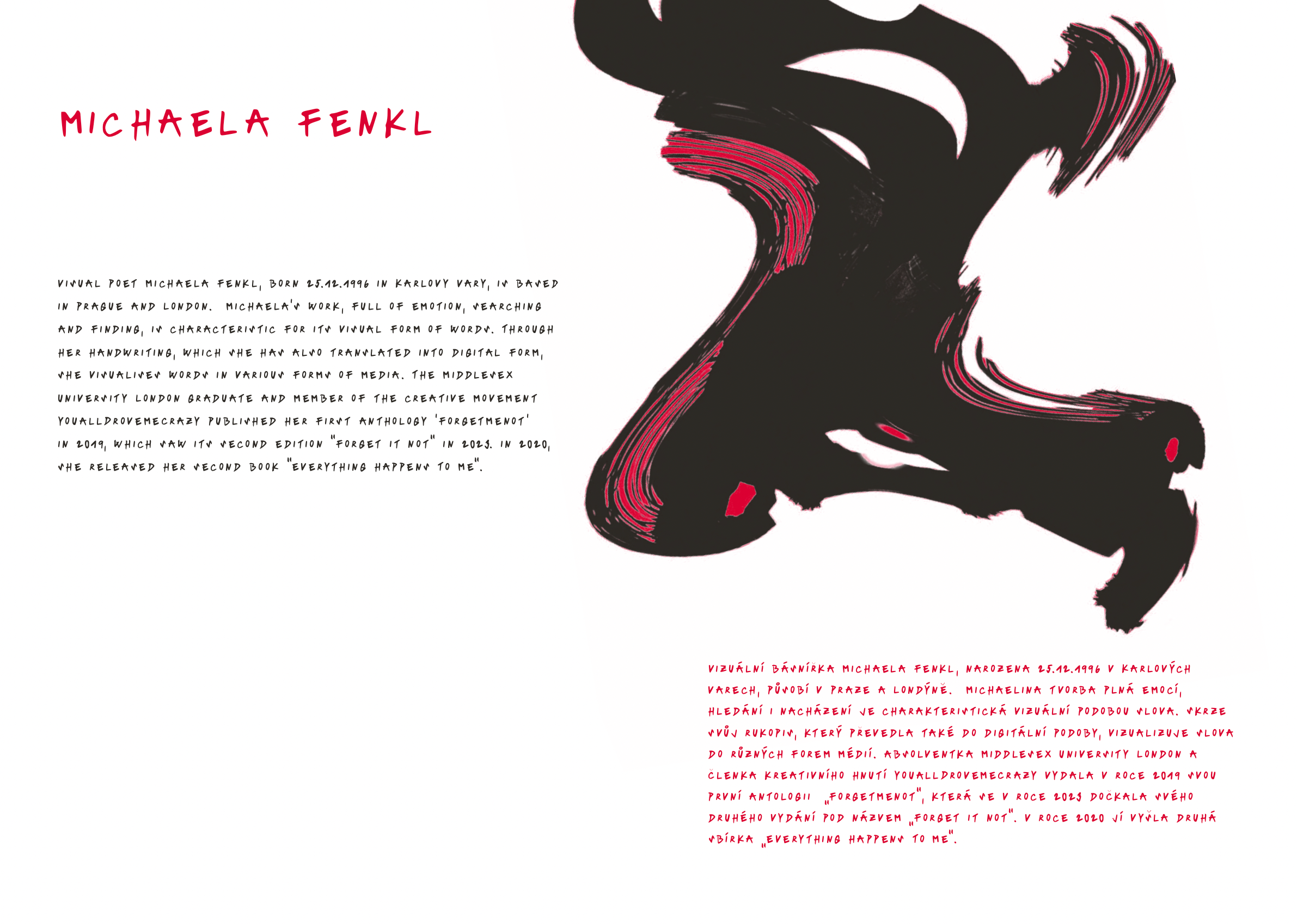 Pražská vizuální básnířka a umělkyně Michaela Fenkl (nar. 1996) vydává svou třetí