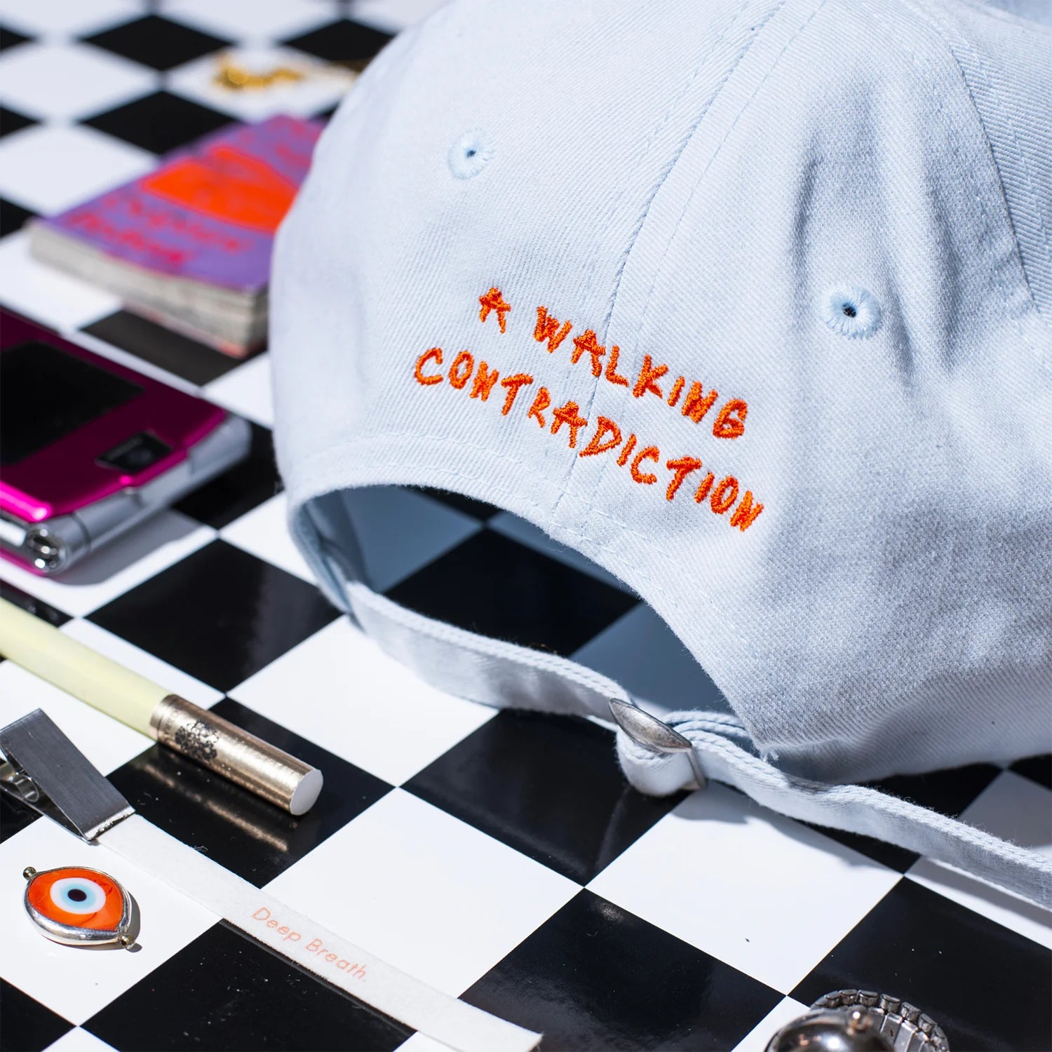 For the ones who say they’re unbothered—but feel everything. The “I Don’t Care (I Do)” cap is a playful tribute to the contradictions we all carry. Crafted from 100% cotton in a dreamy baby blue hue, it features bold orange embroidery for a striking contrast. The front captures the push-and-pull of indifference and sincerity, while the back reveals the truth. Wear it with confidence—because embracing your contradictions is what makes you real & authentic.