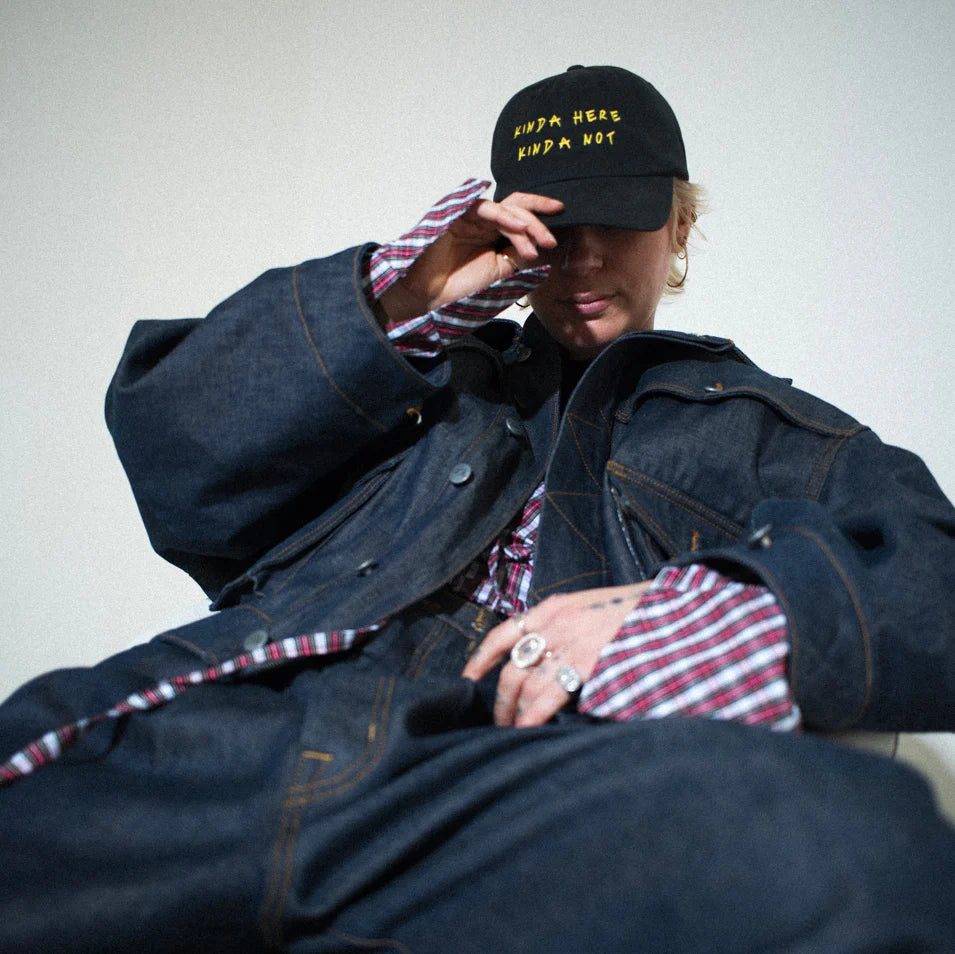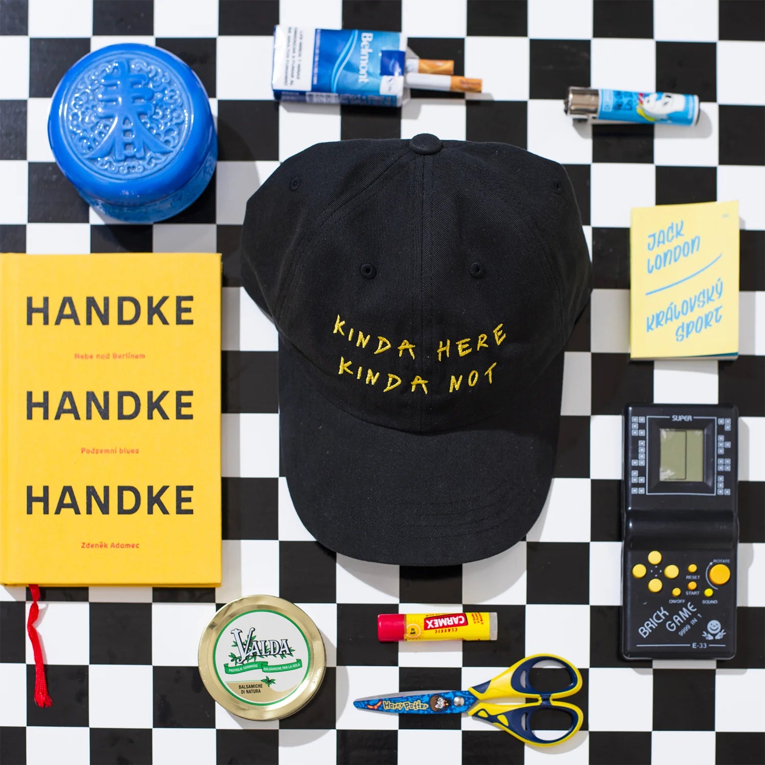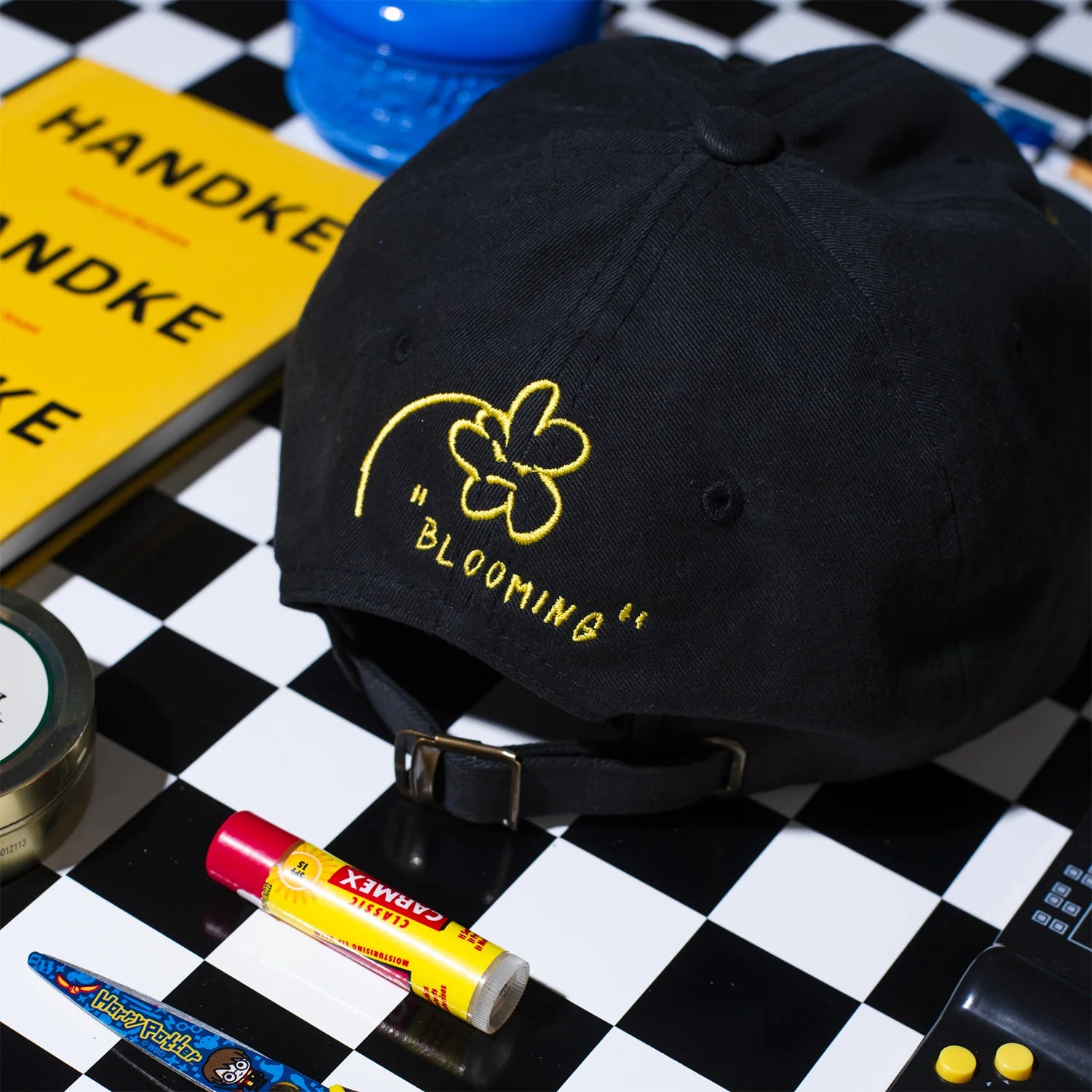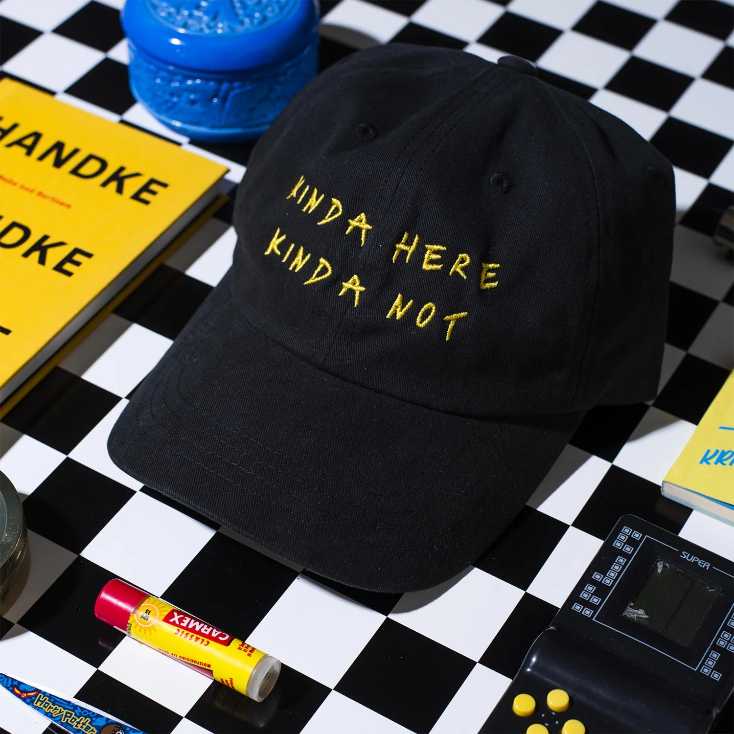 For the ones who drift between worlds—physically present but always lost in thought. The “Kinda Here, Kinda Not” cap is a bold yet understated statement piece, crafted from high-quality black cotton twill canvas with striking yellow embroidery. The front speaks to a feeling of quiet detachment, while the back features “Blooming” alongside an intricately stitched angry flower, embodying the push-and-pull of growth. Wear it as a reminder that even in chaos, you’re still blooming.
